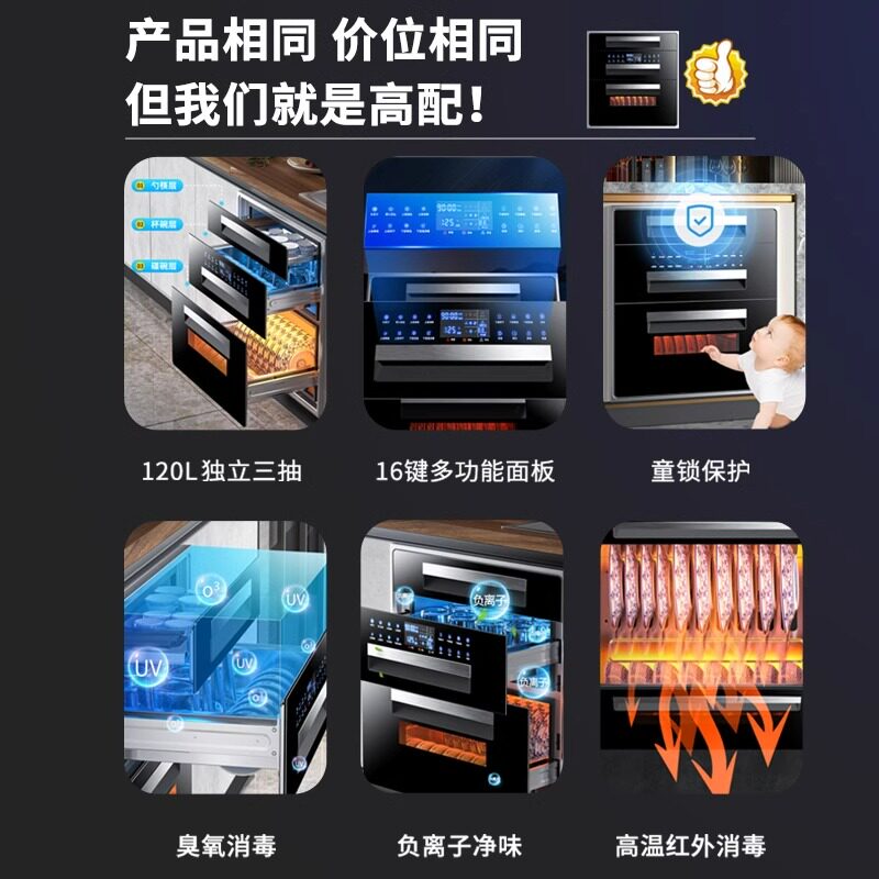 樱花家用消毒柜嵌入式厨房三层120L大容量消毒碗柜
