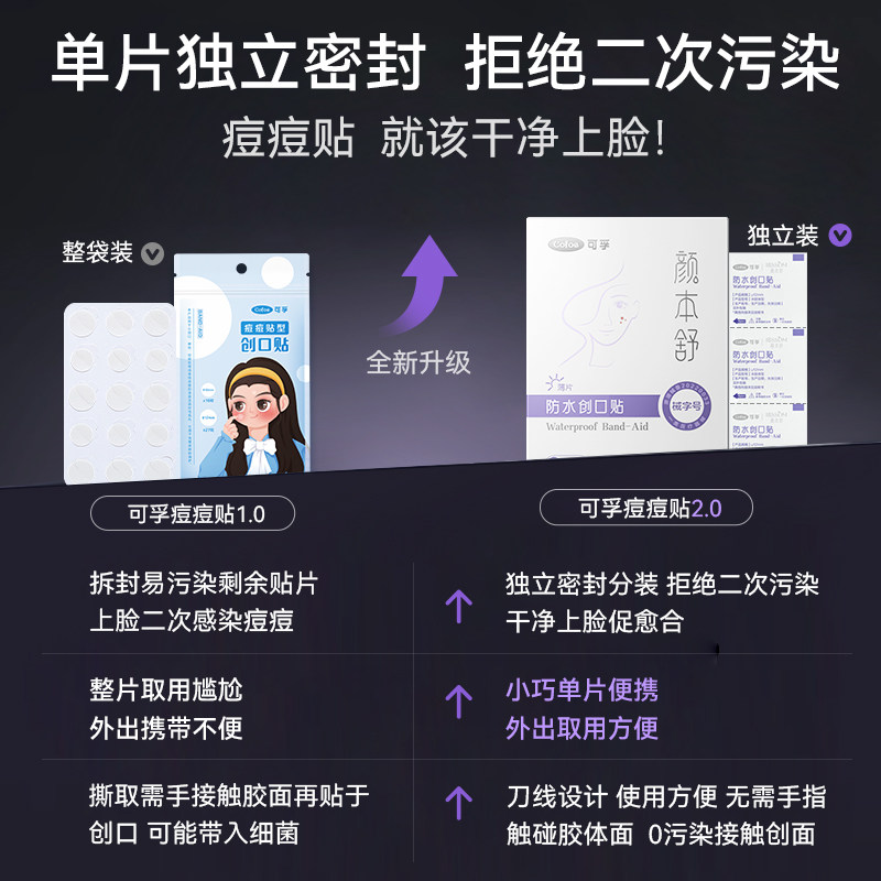 可孚医用痘痘贴吸脓修复痘印人工皮水胶体敷料隐形遮瑕透明豆豆贴