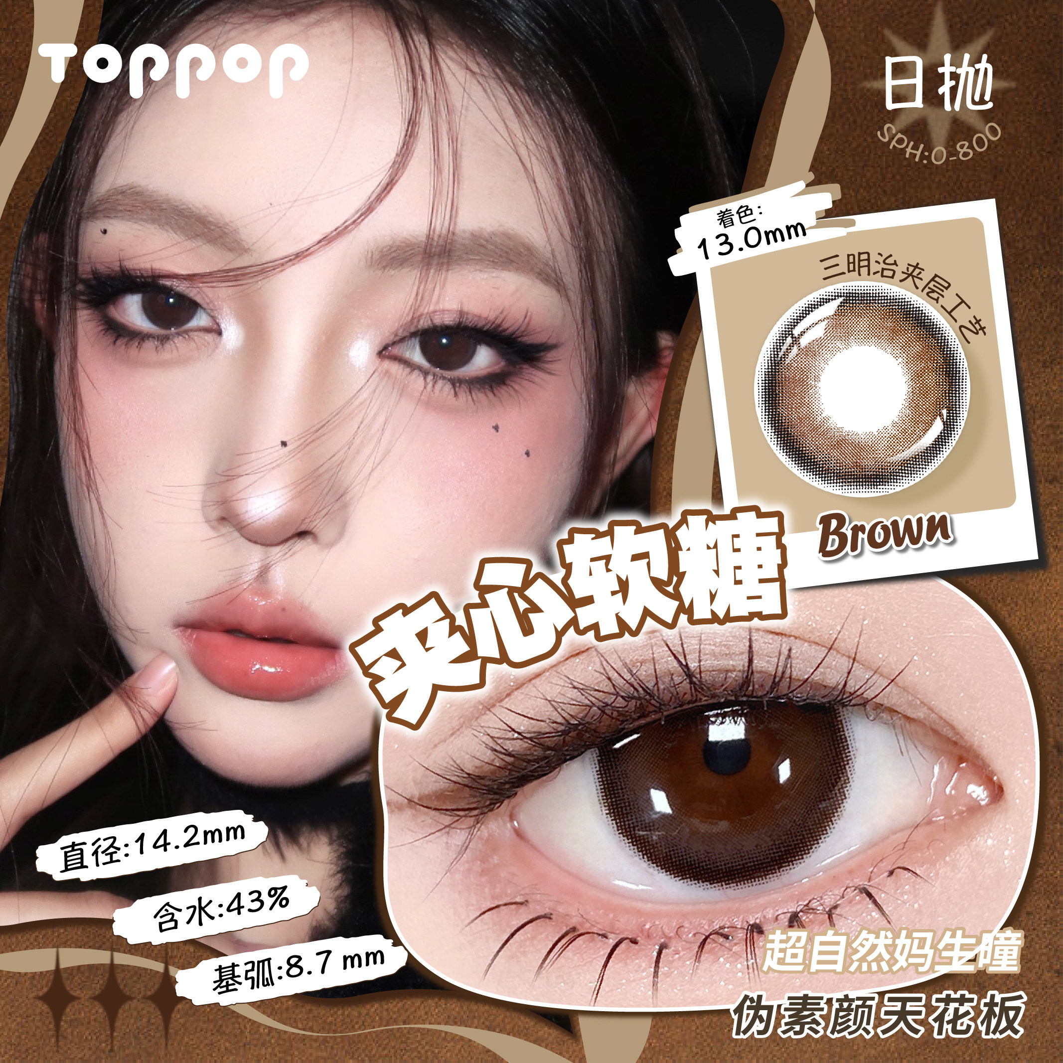 Toppop【灵感系列】三明治工艺日抛美瞳10片锁边夹心软糖隐形眼镜