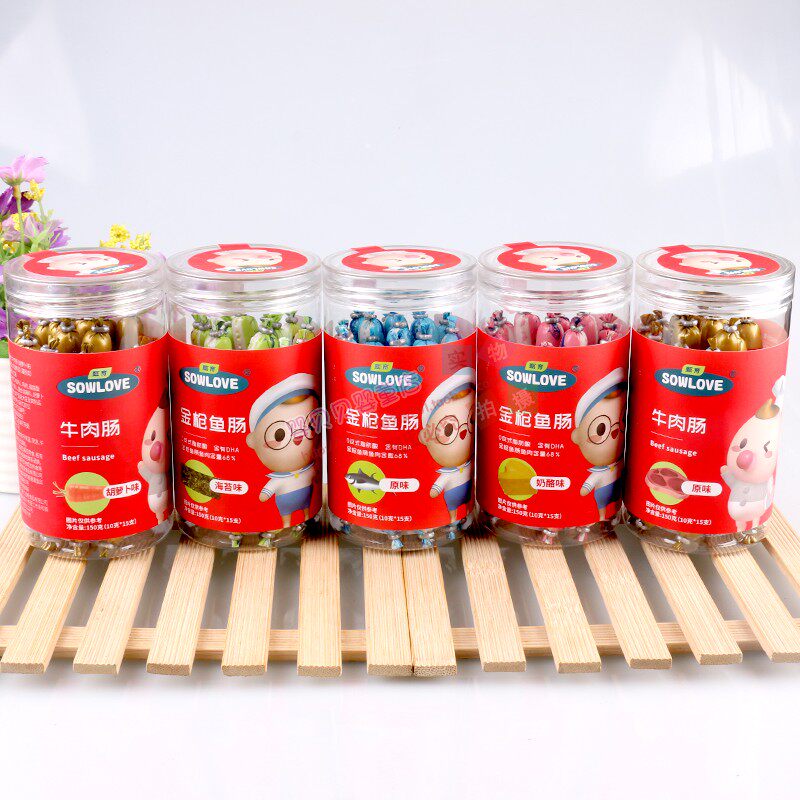 甄育金枪鱼肠牛肉肠10g*15根桶装儿童食品火腿肠原味海味苔奶酪味