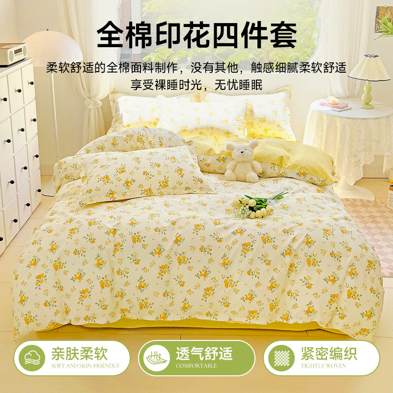 ins小清新四件套纯棉2025新款100全棉床单被套罩四季通用床上用品