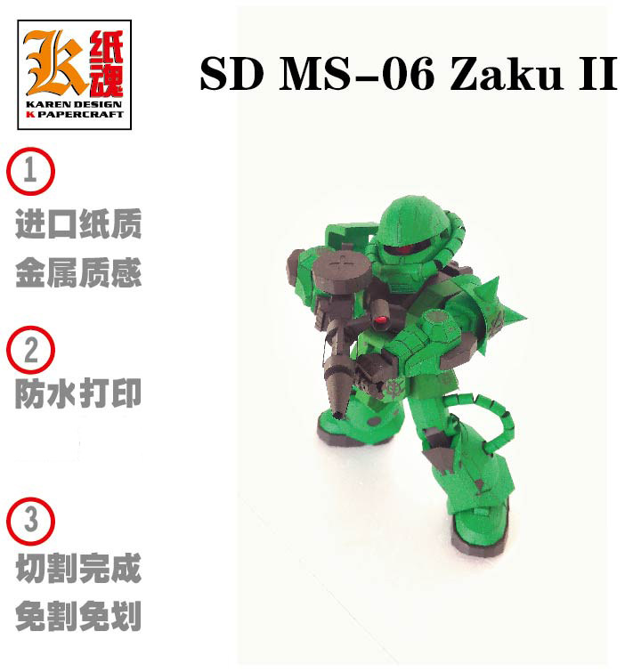K纸魂 SD MS-06 Zaku II 渣古 纸模型DIY 免划线免切割