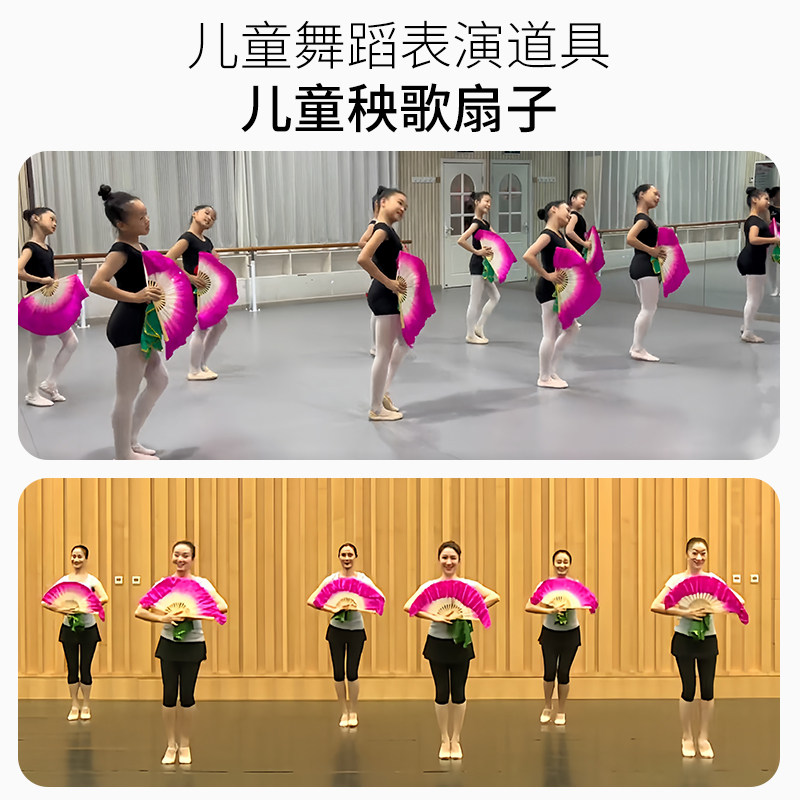 扇子舞蹈扇八寸儿童胶州秧歌扇子小孩学生表演考级双面扇舞蹈道具