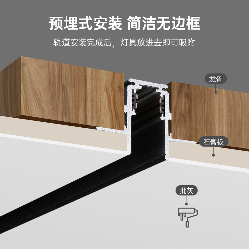 预埋磁吸轨道灯内嵌入式客厅无主灯暗装卧室照明线条灯长条射灯