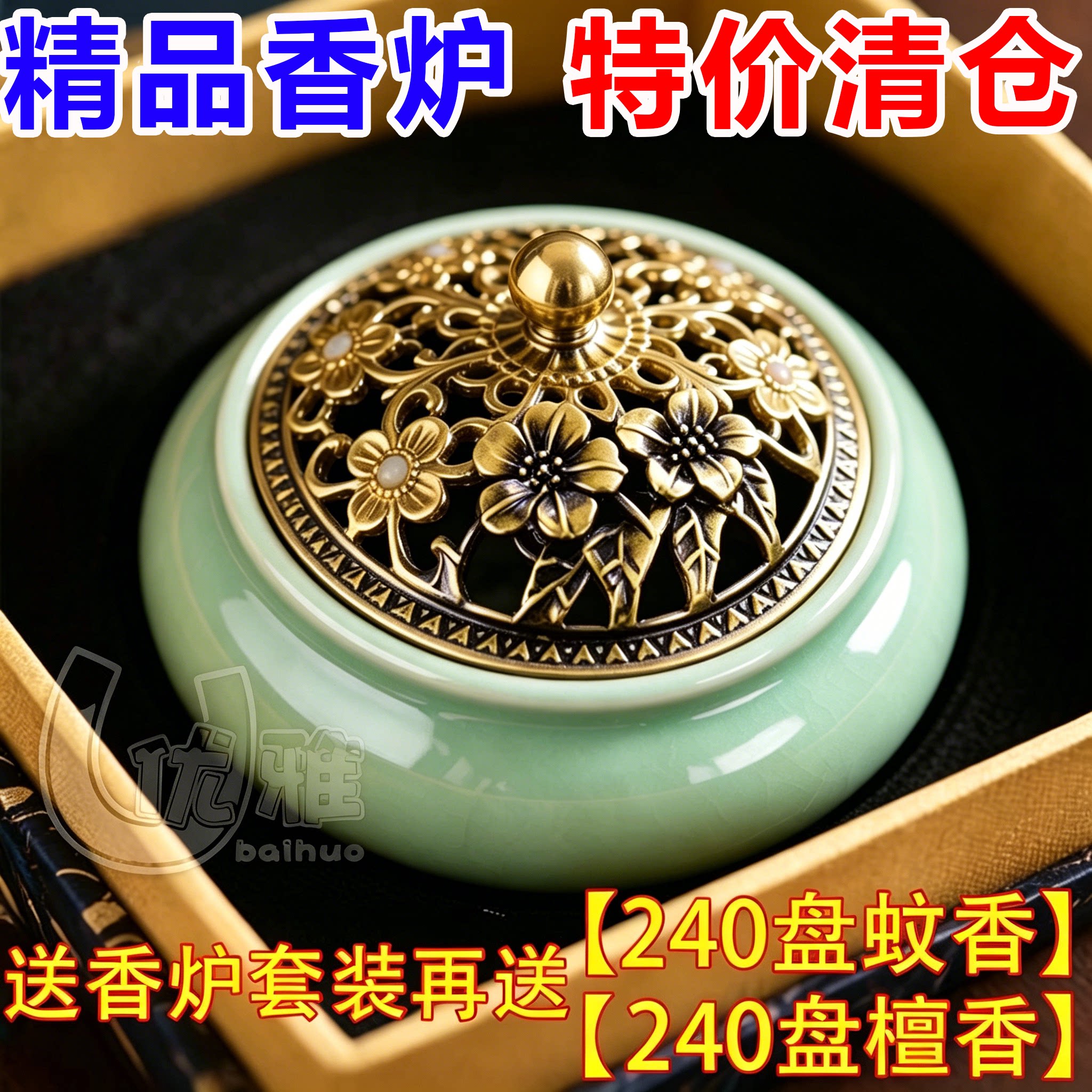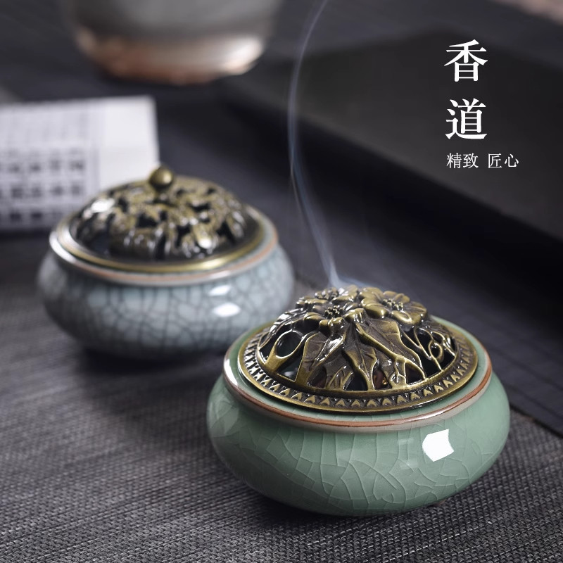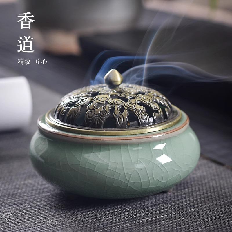 香炉陶瓷家用沉香大号室内陶瓷器盘香檀香蚊香盘托茶道薰炉清仓