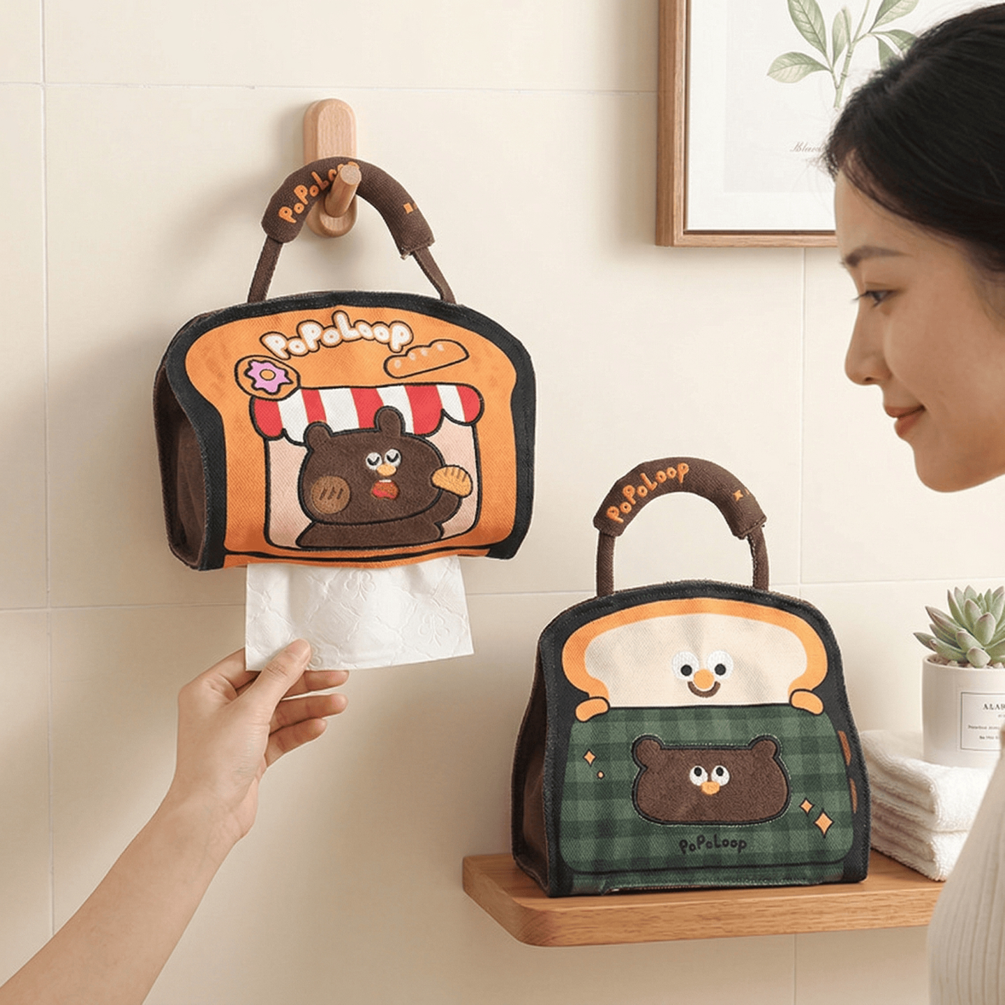 可爱小熊纸巾袋悬挂式布艺纸巾盒卫生间厕纸高级感抽纸盒纸巾挂袋