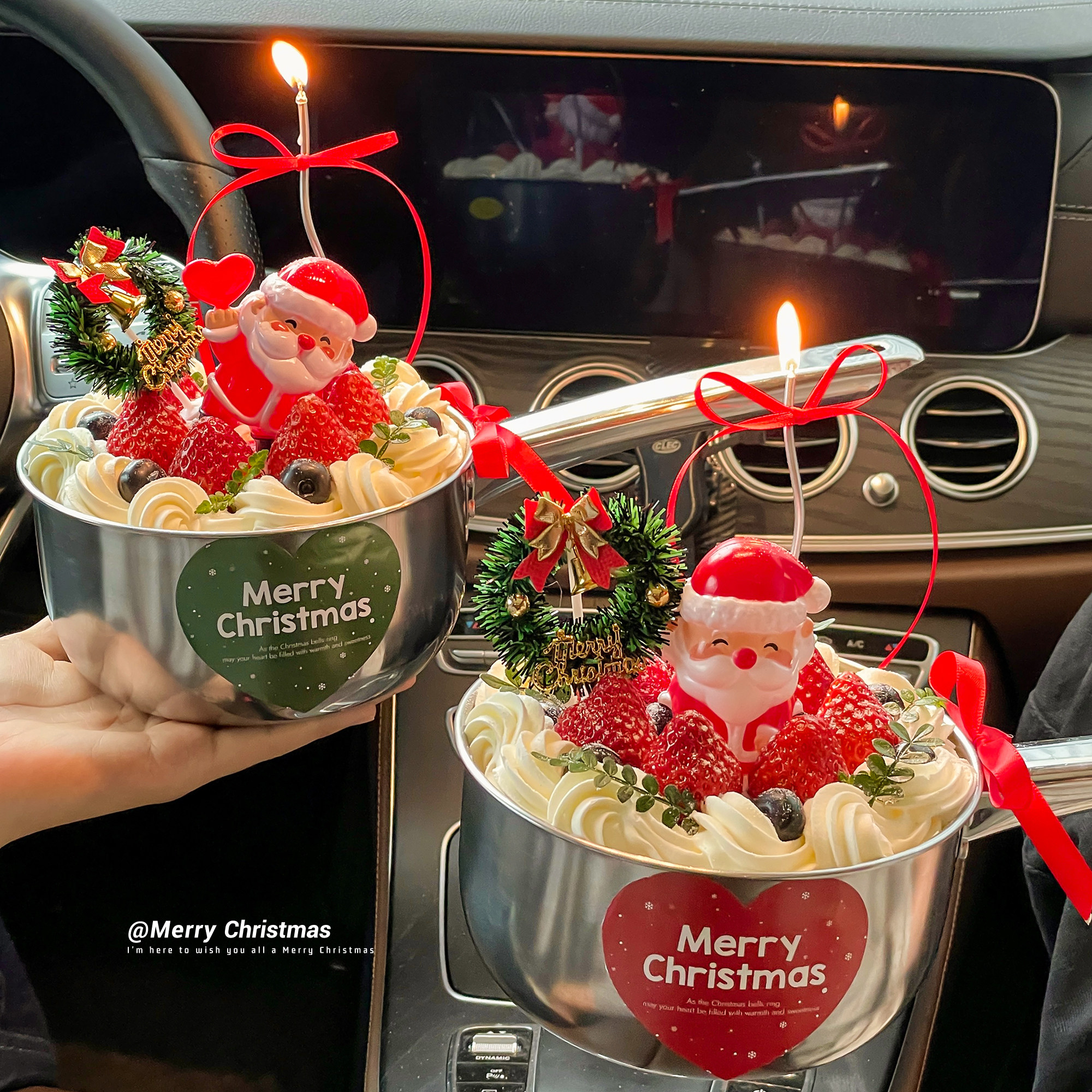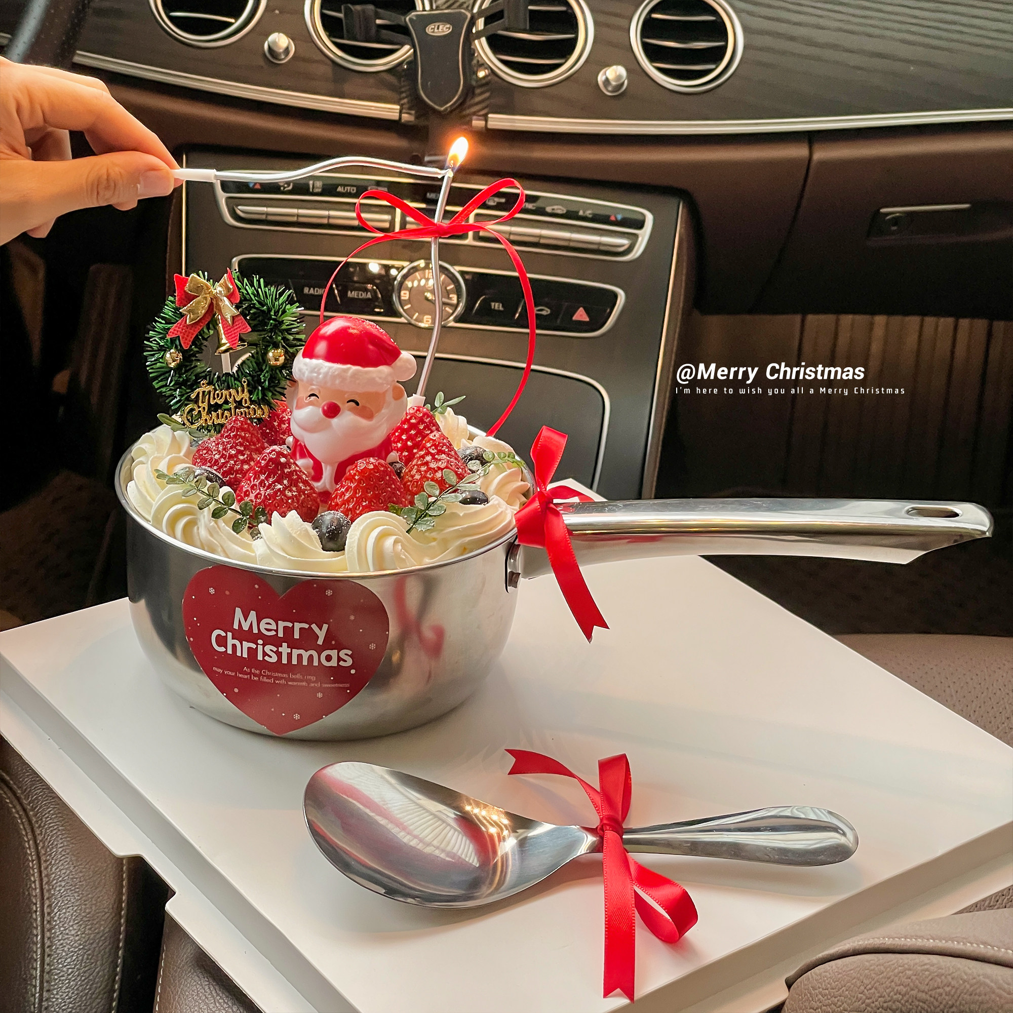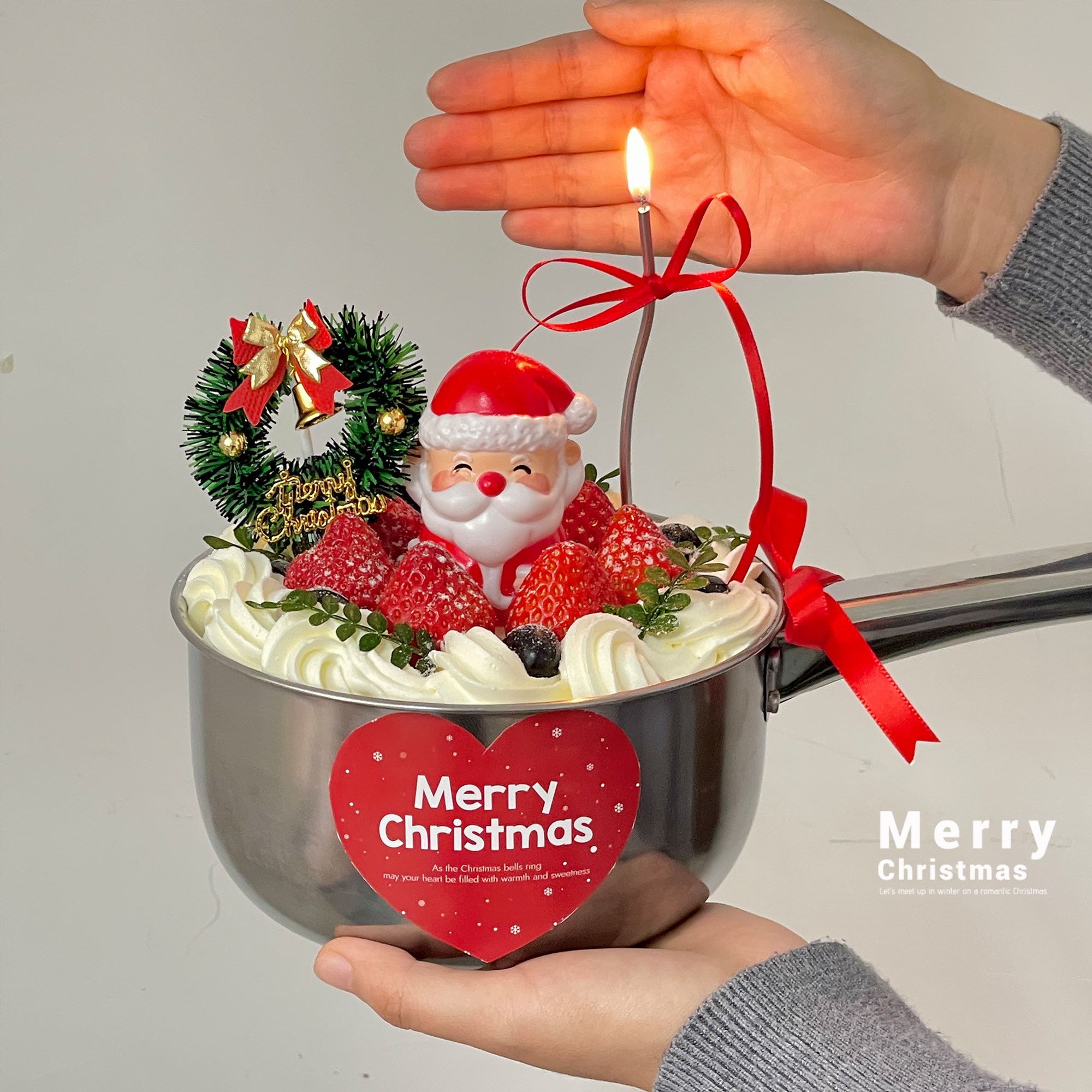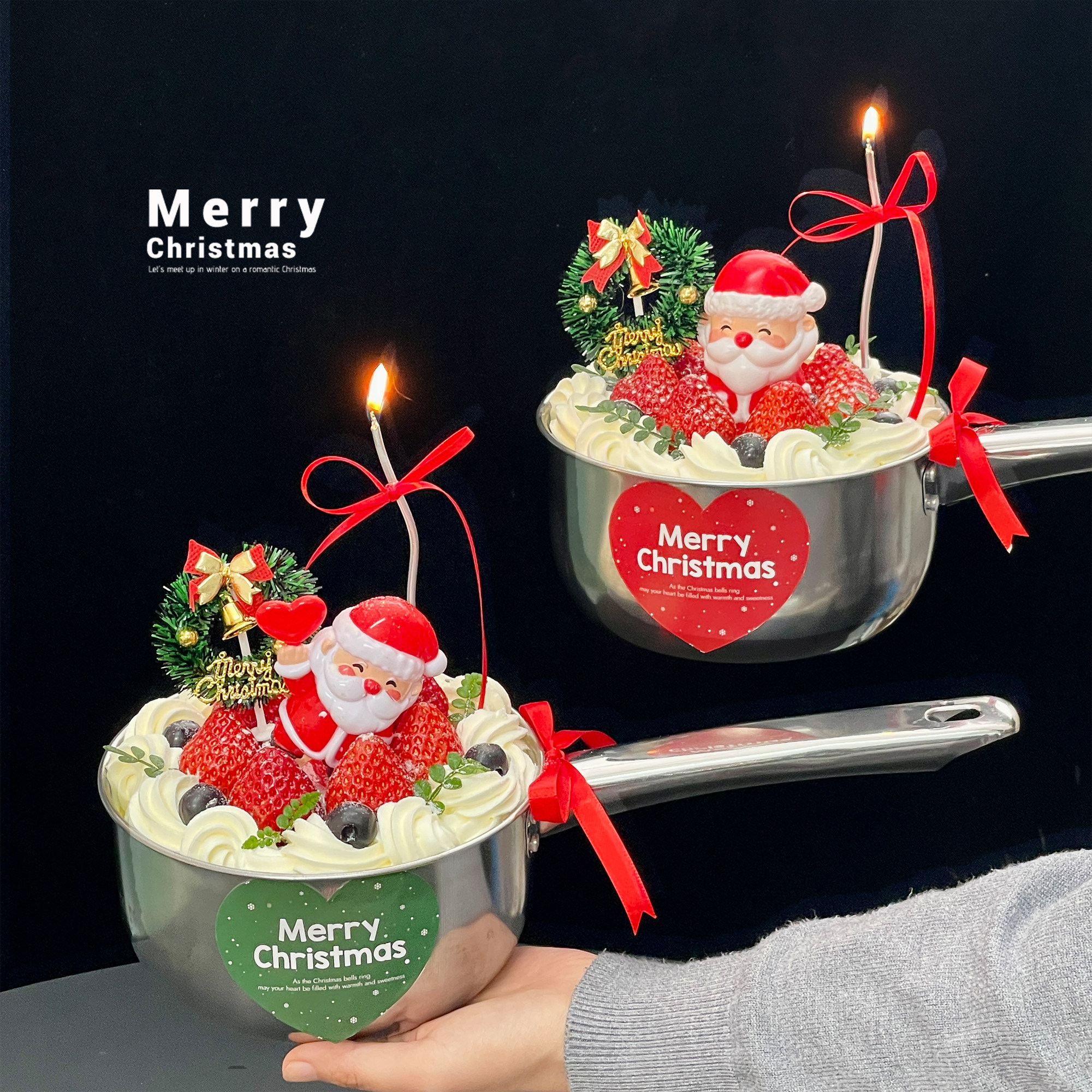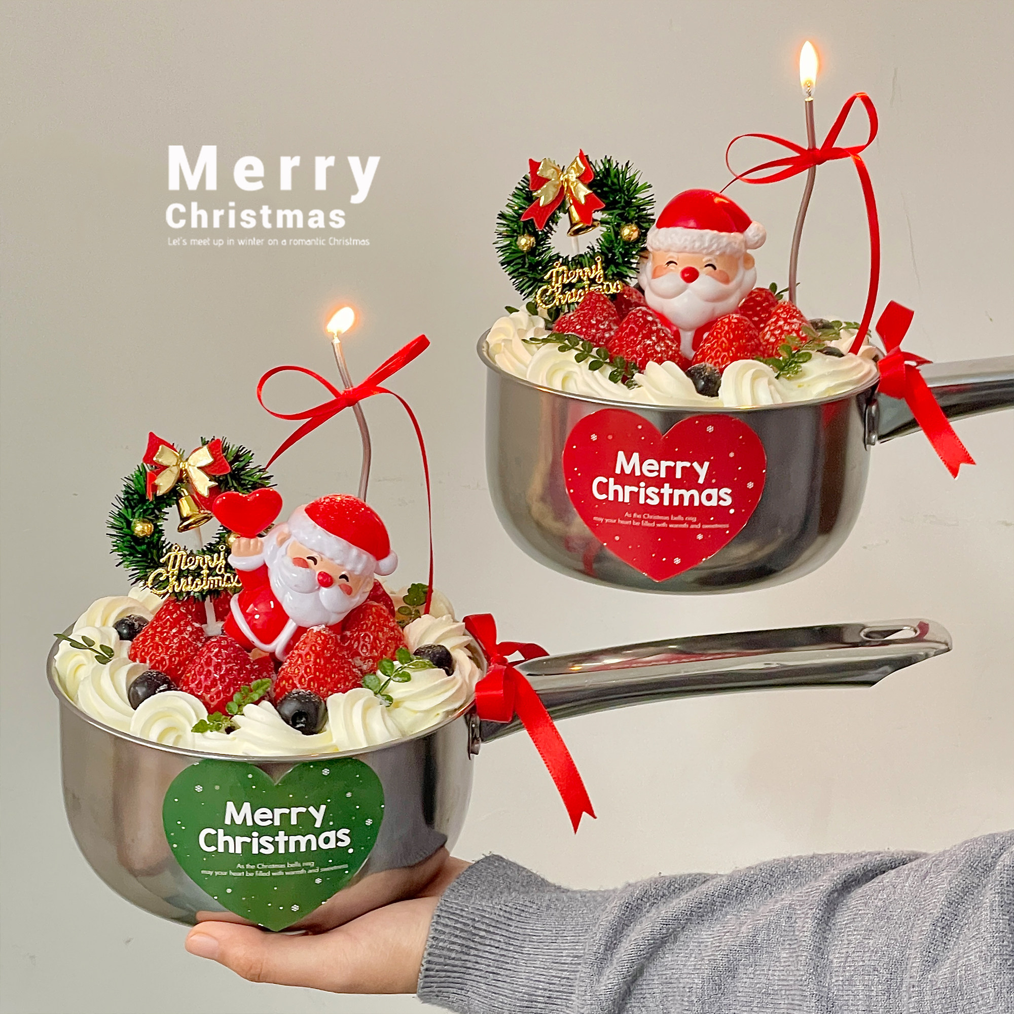 2025圣诞节水瓢草莓蛋糕装饰不锈钢水舀勺子圣诞老人草圈贴纸装扮