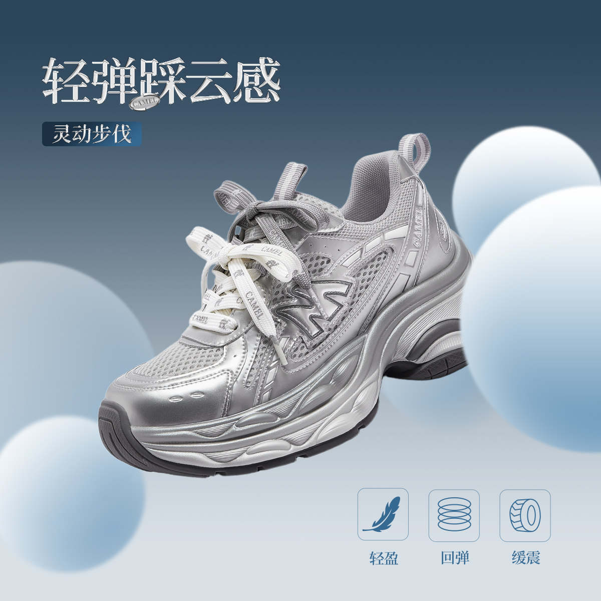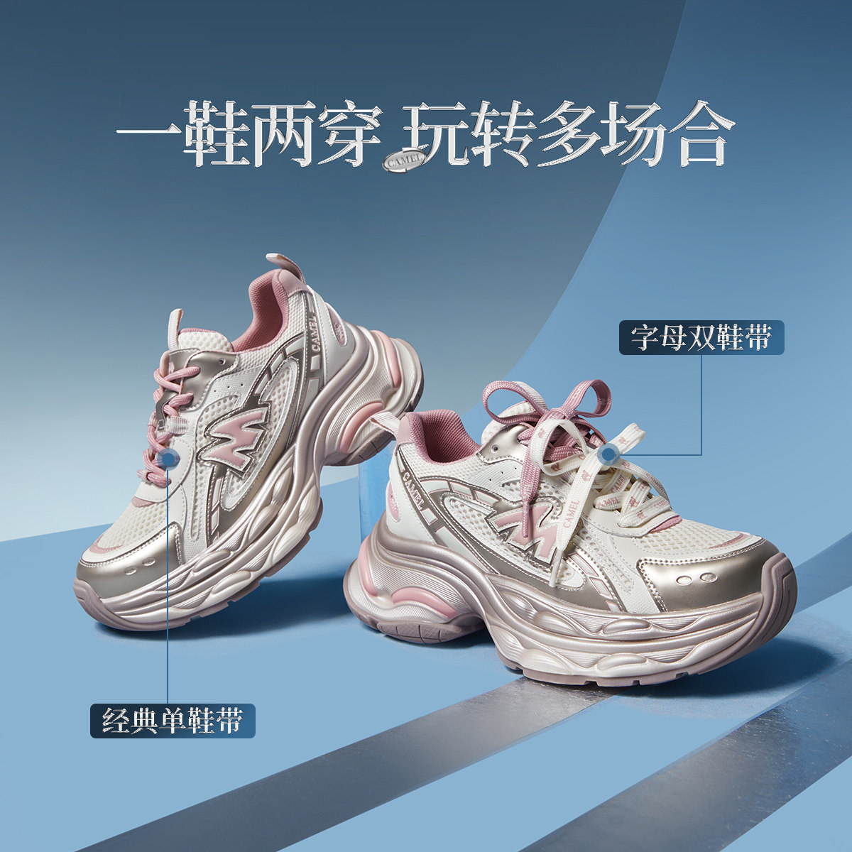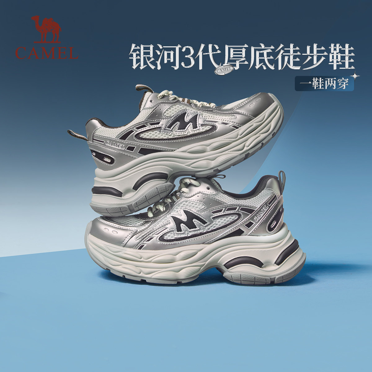 【李柯以同款】骆驼银河3代老爹鞋2026春厚底增高网面休闲运动女