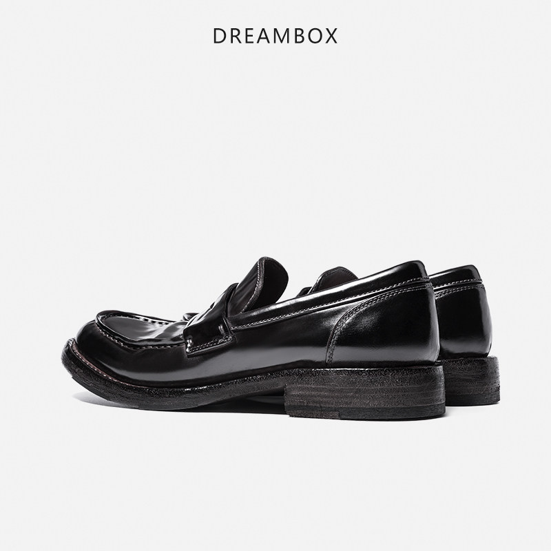 DREAMBOX钧博vibram马臀皮纯手工乐福鞋夏季透气固特异一脚蹬皮鞋