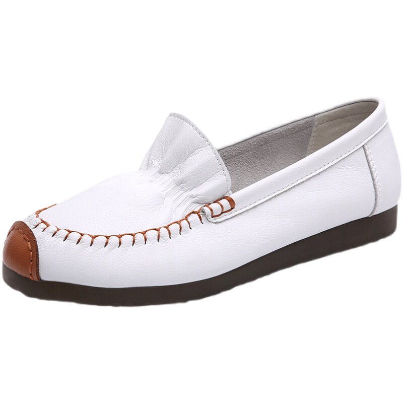 真皮豆豆鞋女春秋款一脚蹬懒人平底单鞋软底软面洋气中年妈妈鞋子