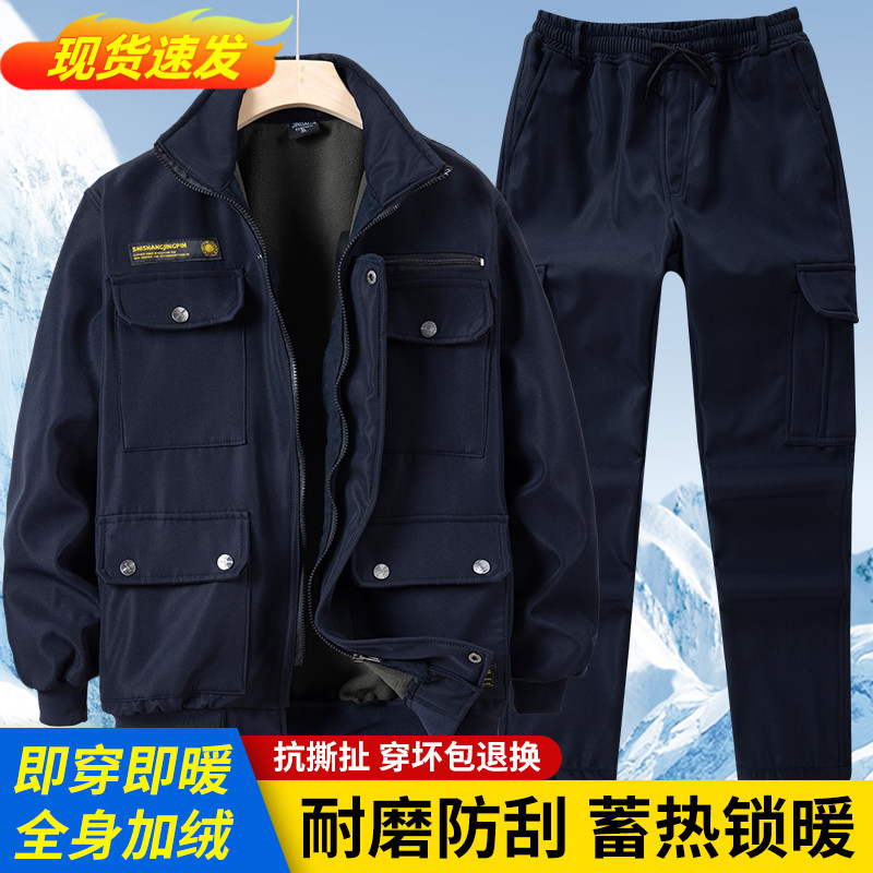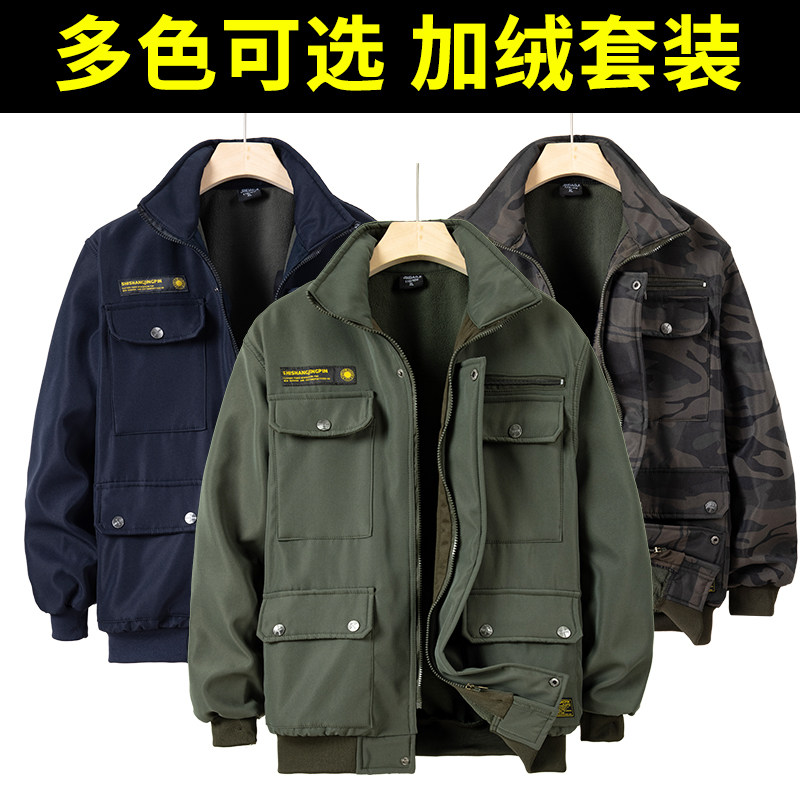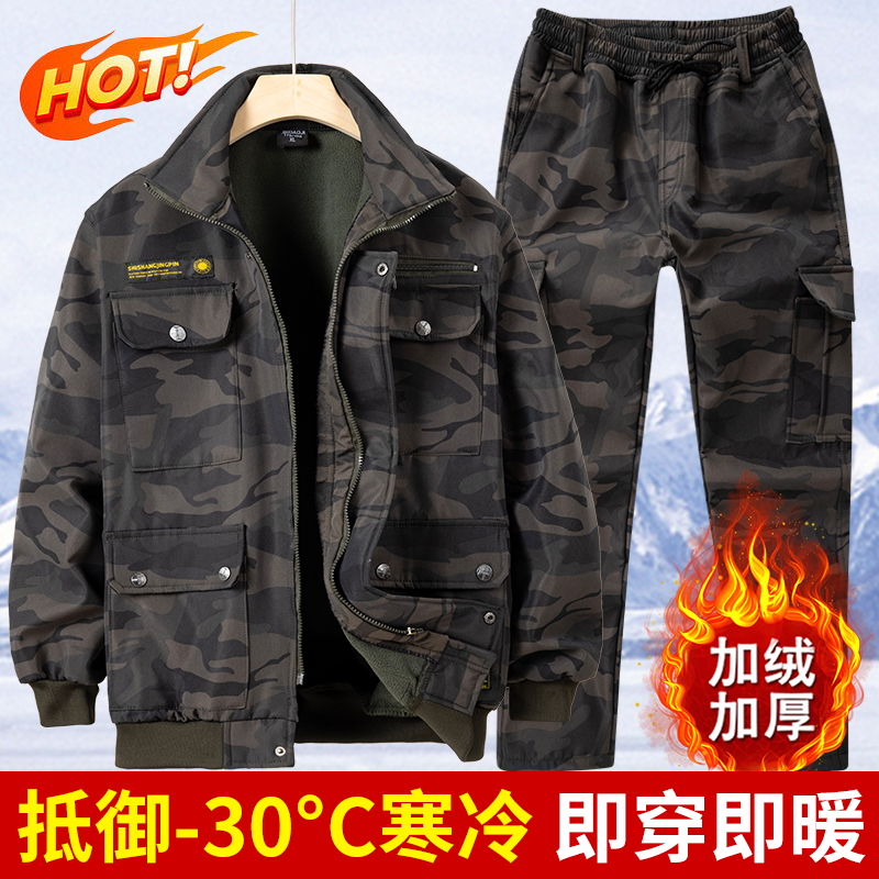 冬季工作服男装套装加绒加厚迷彩防水保暖户外建筑工厂劳保工装服