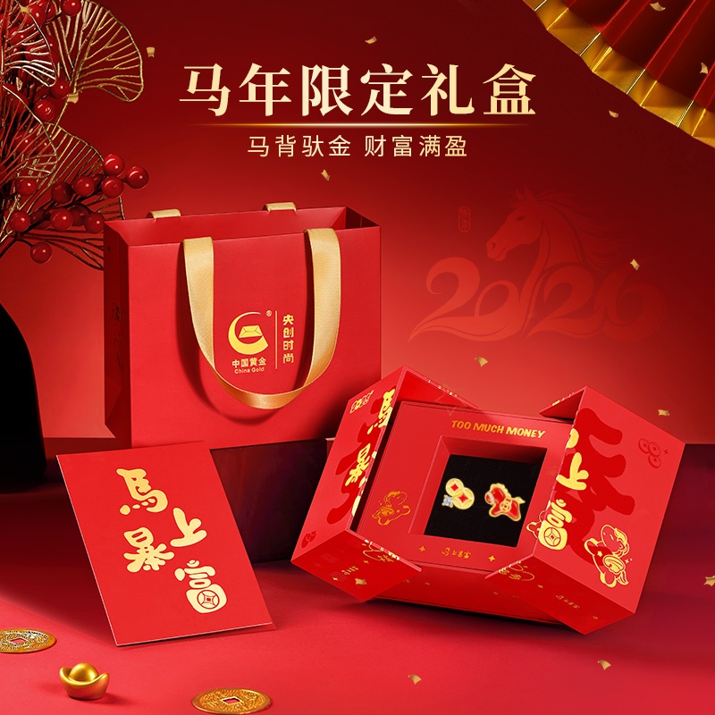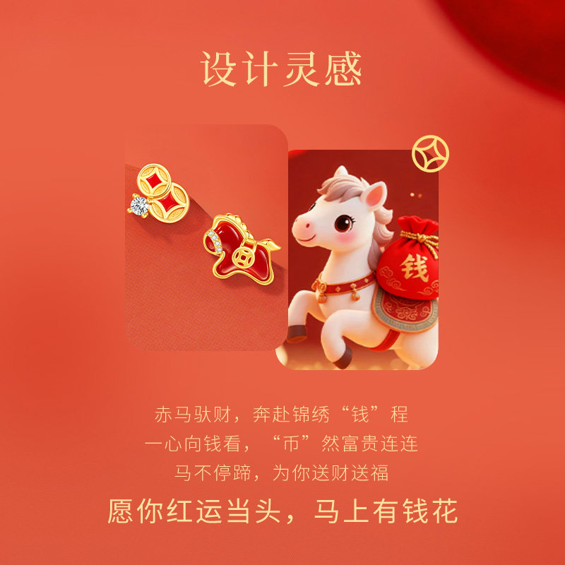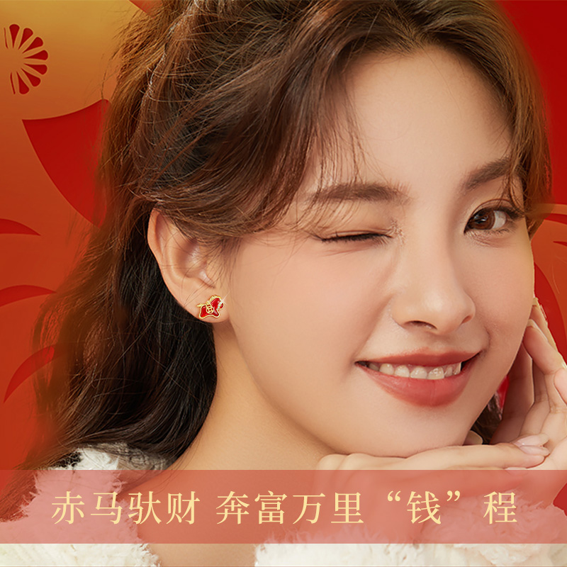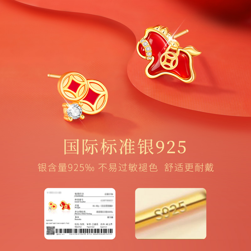 中国黄金央创2026马年本命年耳钉女纯银耳饰属马吉祥佩戴礼物S925