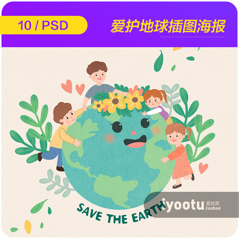 创意手绘保护地球爱护环境环保插图海报psd分层设计素材i2150606