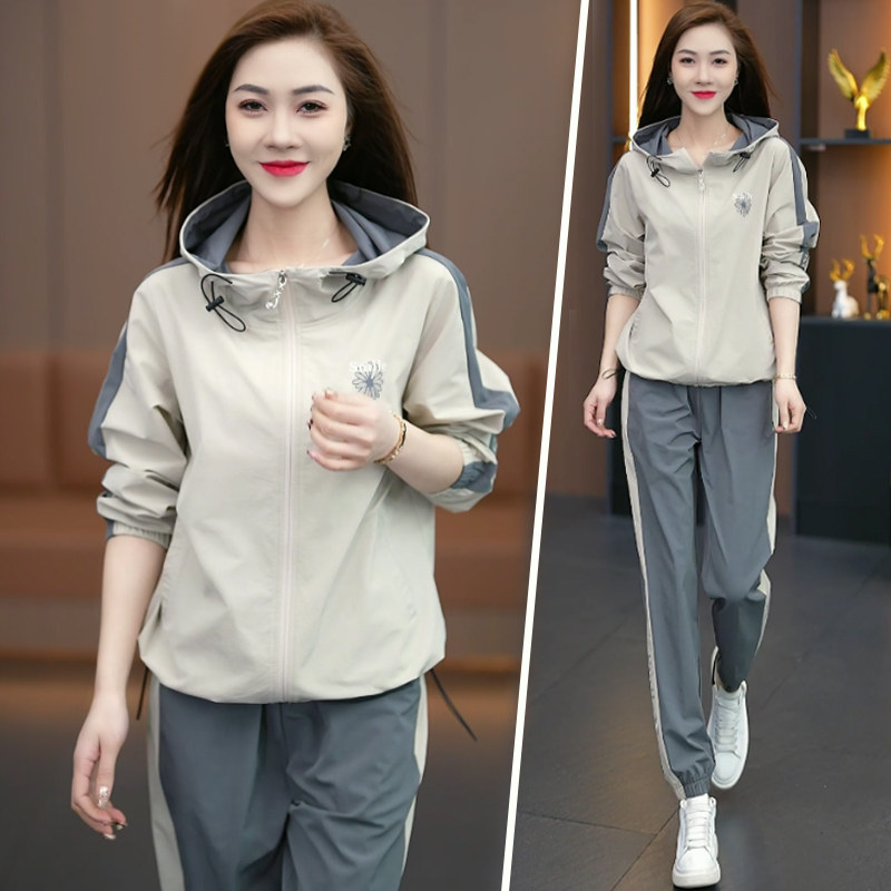 运动套装女2026新款春秋时尚减龄连帽气质外套跑步服两件套束脚裤