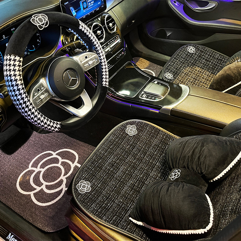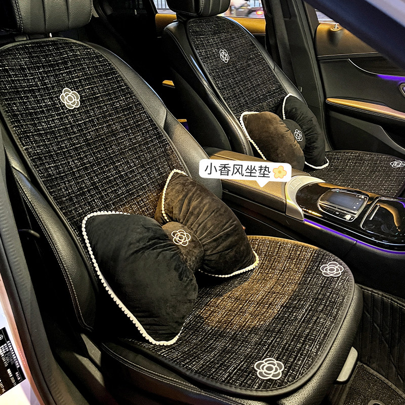 夏季汽车坐垫凉垫四季通用山茶花小香风透气亚麻单片座垫车载垫女