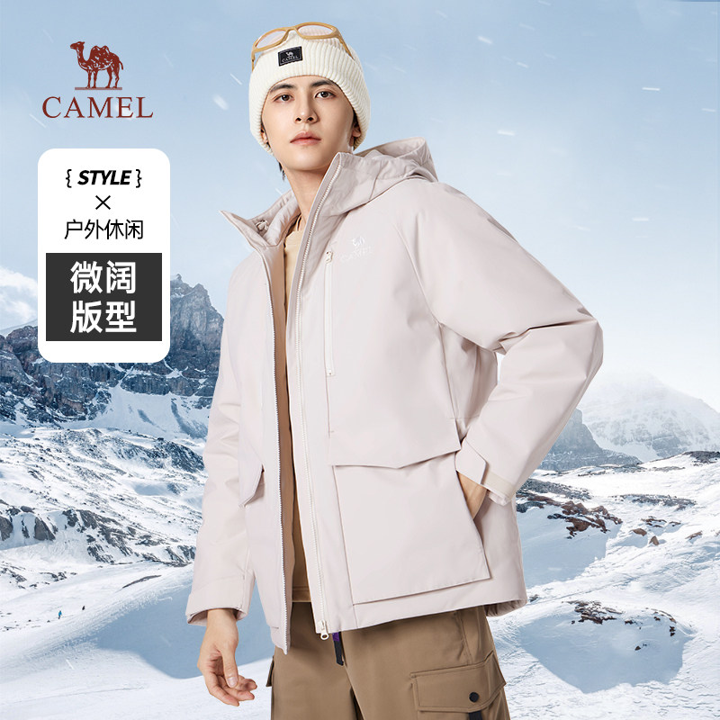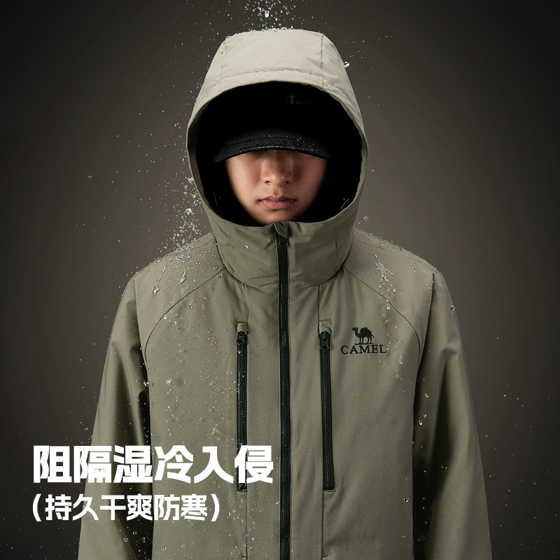 骆驼男装夹克棉服男秋冬季2025工装防水加绒加厚保暖棉衣外套