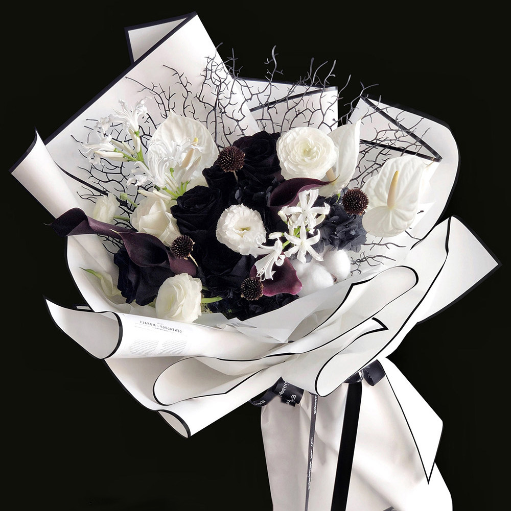 黑白贵族哑光膜边框鲜花包装防水纸花艺花束韩素纸包花纸DIY材料