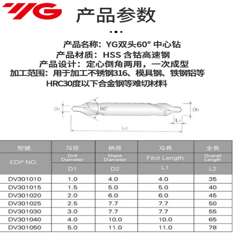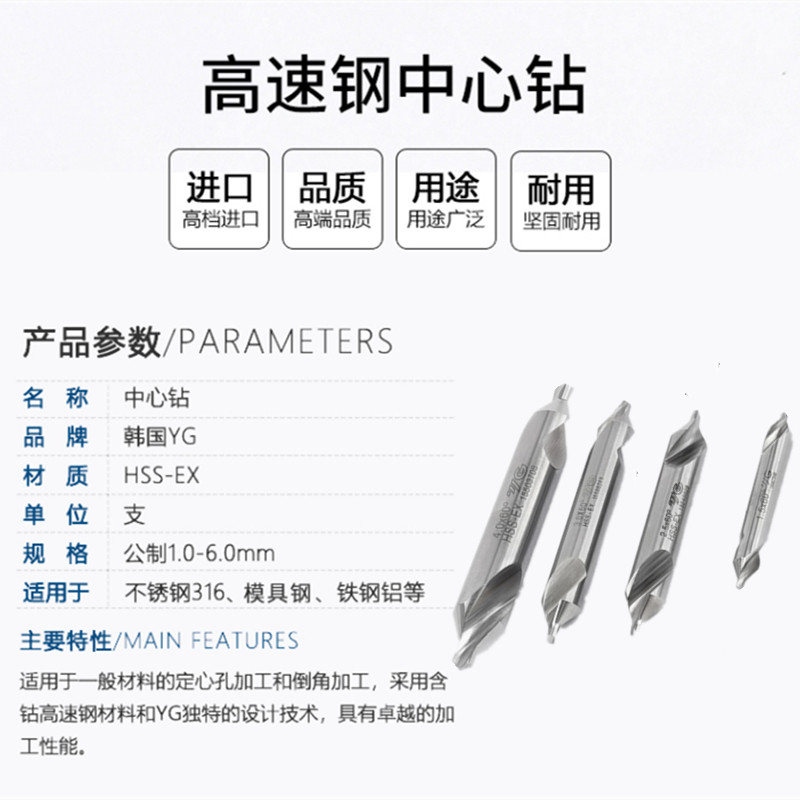 正宗韩国YG 60°中心钻高钴定点定心钻1.0 1.5 2.0 3.0 4.0 5.0