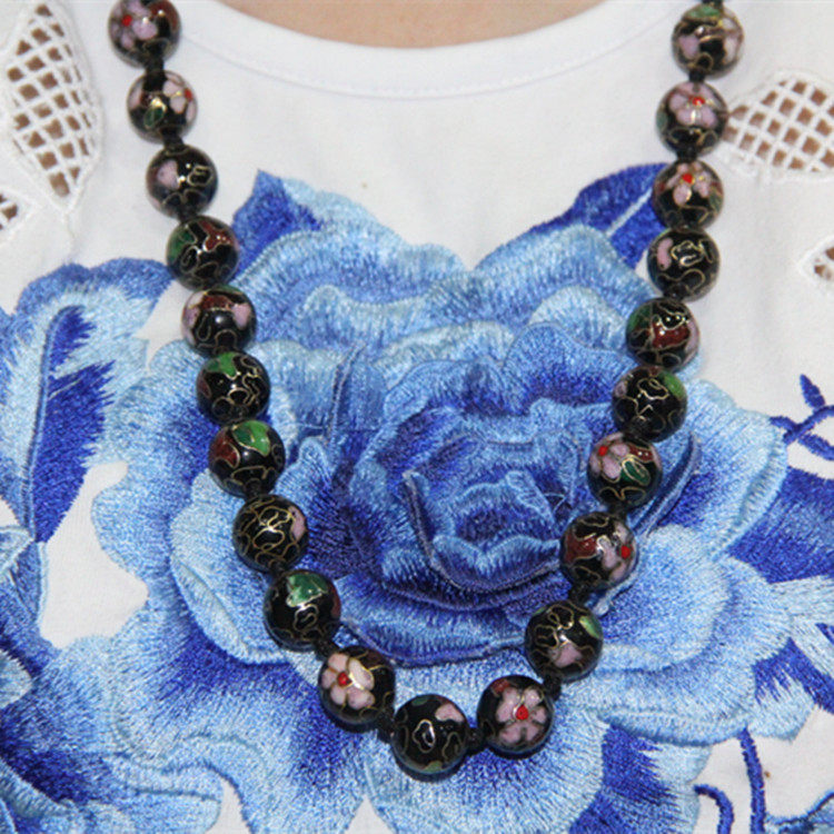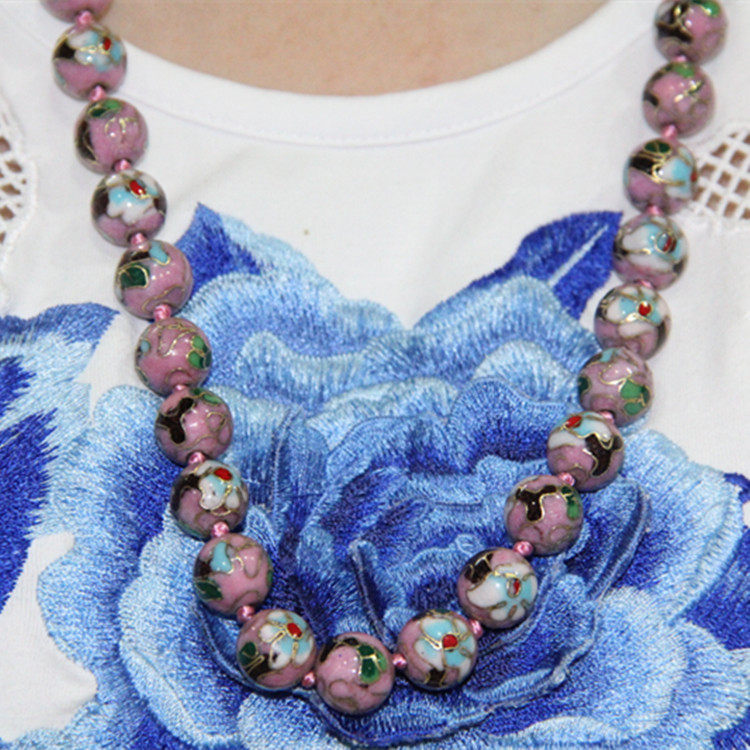 包邮北京特色手工艺品景泰蓝老货银蓝项链铜胎掐丝珐琅手工串珠子