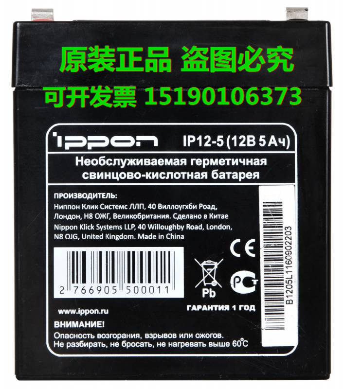 IPPON蓄电池IP12-5(12B5AH)12V5AH原装正品/铅酸阀控式 电瓶 包邮