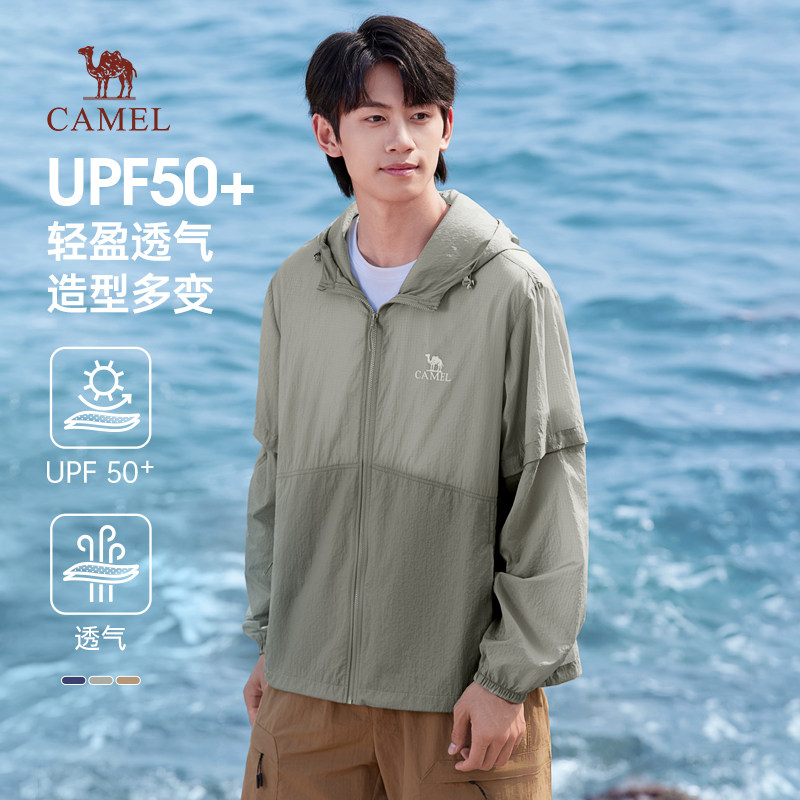 骆驼男装高倍防晒衣男款可拆卸袖子时尚透气皮肤衣防晒服外套男