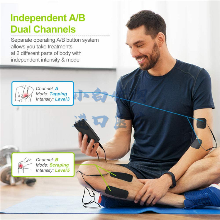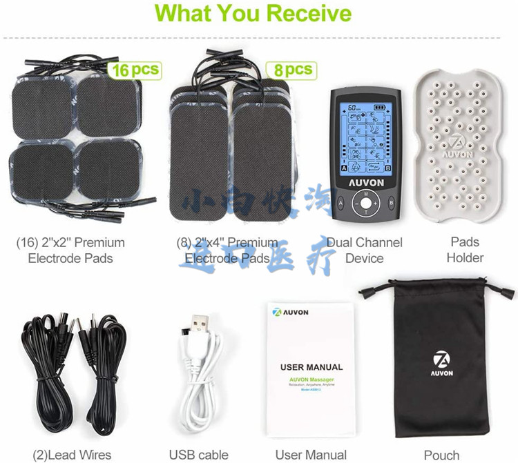 AUVON TENS双通道针灸独立模式膝盖运动损伤按摩止痛肌肉刺激器