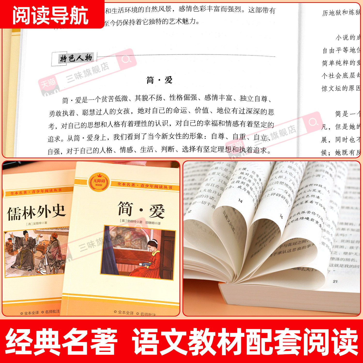 正版原著 儒林外史简爱 九年级下册必读书完整版无删减 课外阅读书籍配套人教版课本教材初三9中学生语文名著课程化丛书唐诗三百首