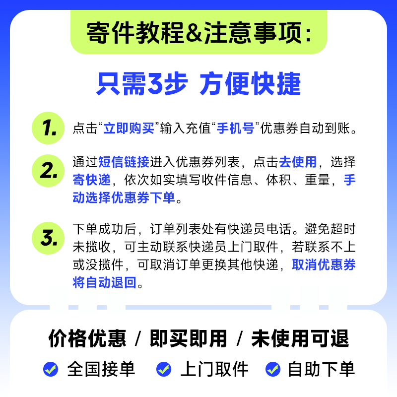 【快递代下单】3元全国优惠券提货券圆通中通菜鸟代下单大件物流