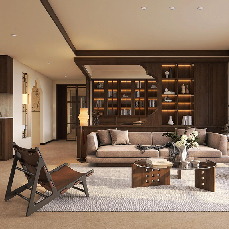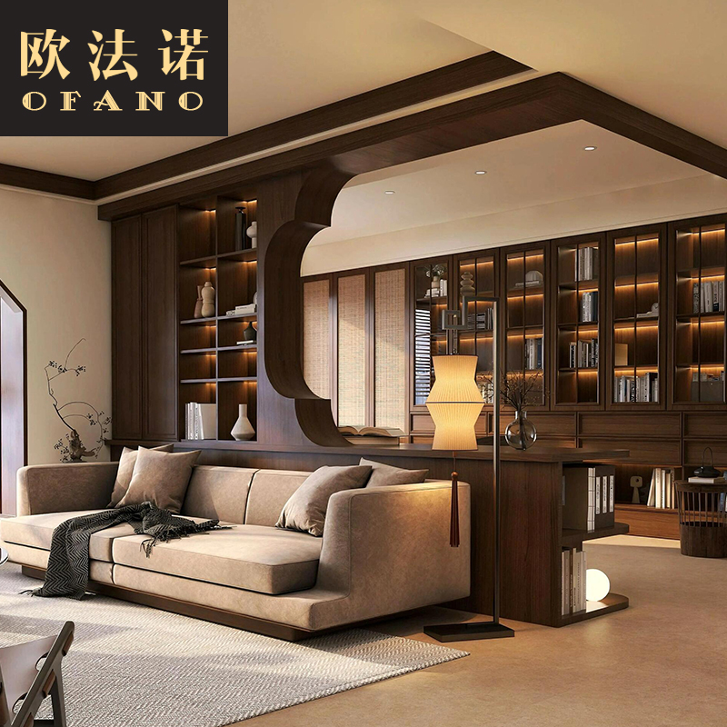 全屋定制中式客厅书柜书房全屋空间整装书柜平开门定制工厂定做