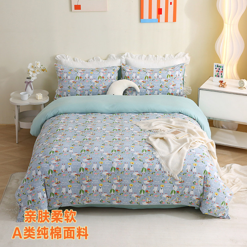 A类针织棉多件套纯棉四件套单人床三件套被罩床单枕罩床品套件