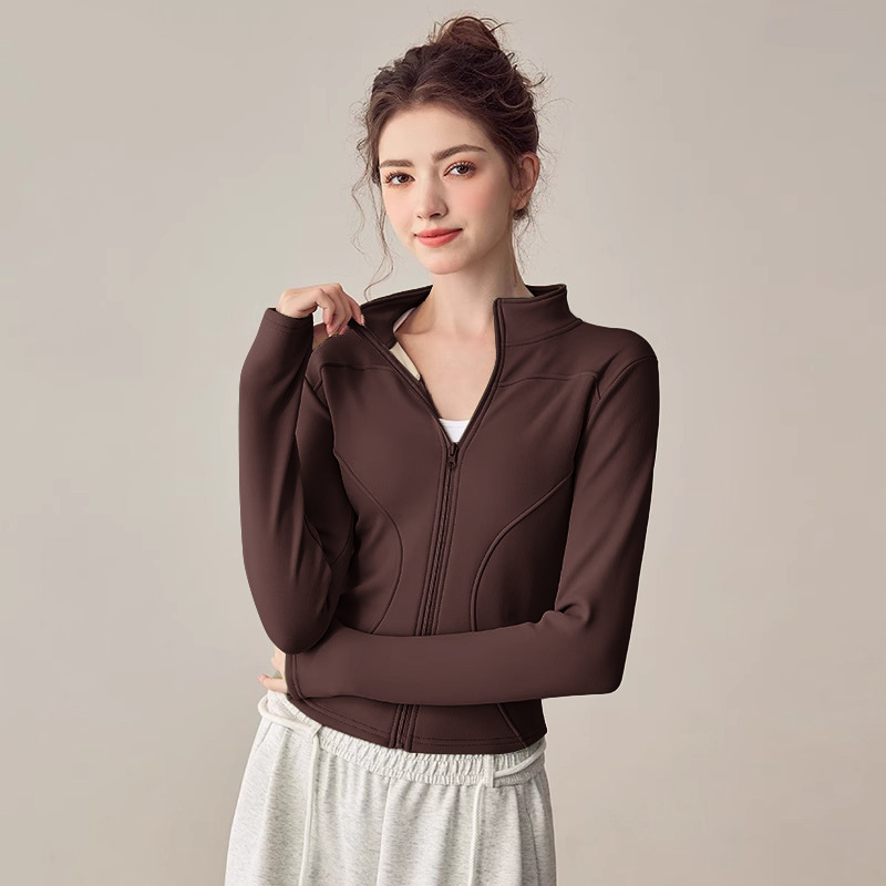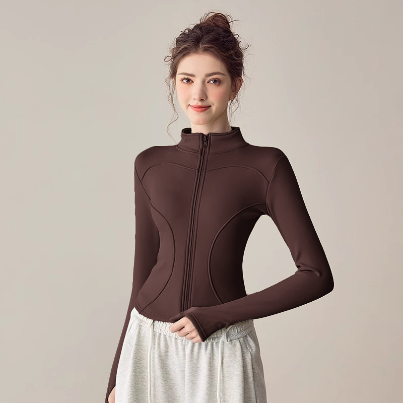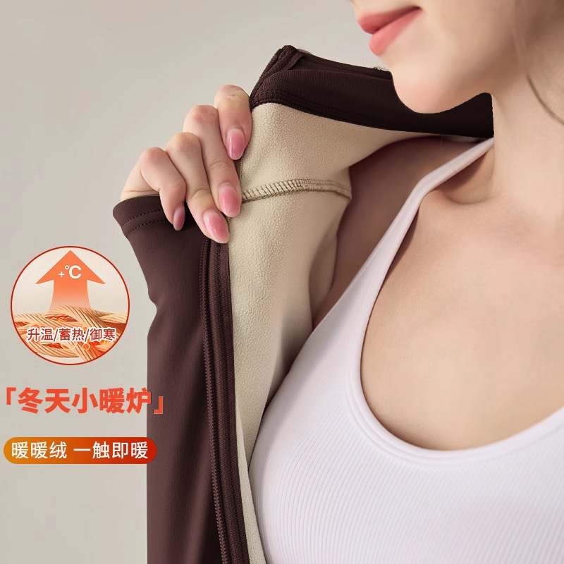 冬季抓绒内胆瑜伽修身运动上衣加绒普拉提瑜伽服女健身衣内搭外套