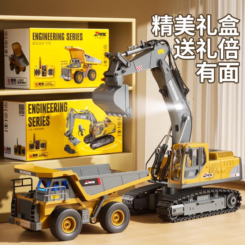 遥控挖掘机挖机挖土机合金自卸卡车遥控车儿童玩具男孩黑科技礼物