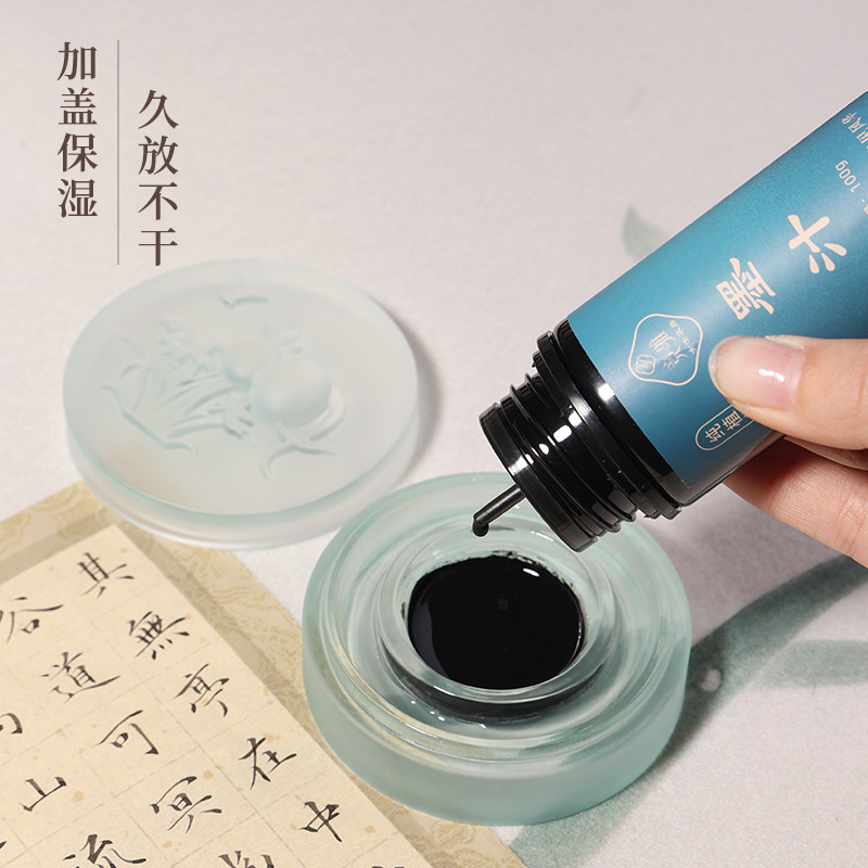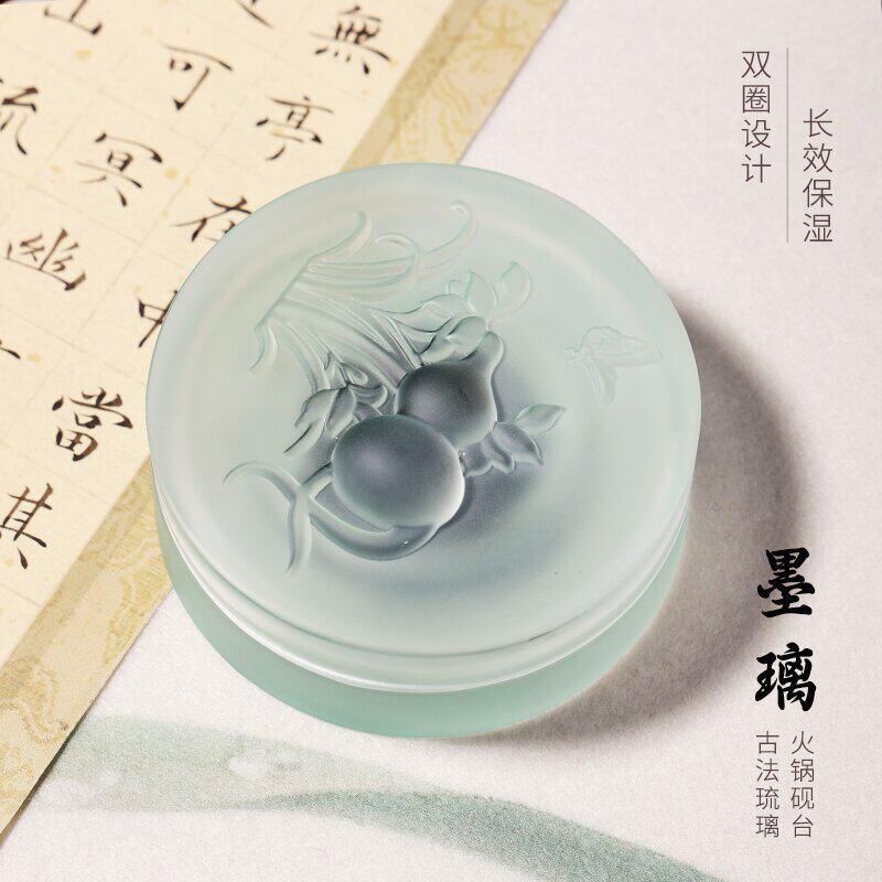 竞雅【新一代墨璃】双圈保湿火锅砚台古法琉璃墨碟双圈设计长效保湿文房四宝书法用品