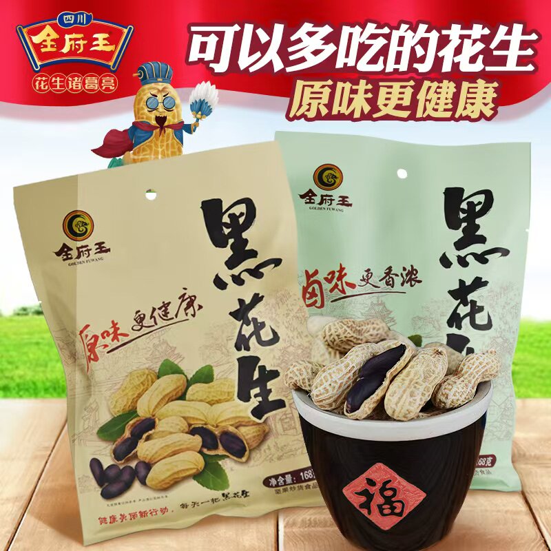 金府王带壳花生下酒休闲零食黑花生炒货及坚果制品四川特产