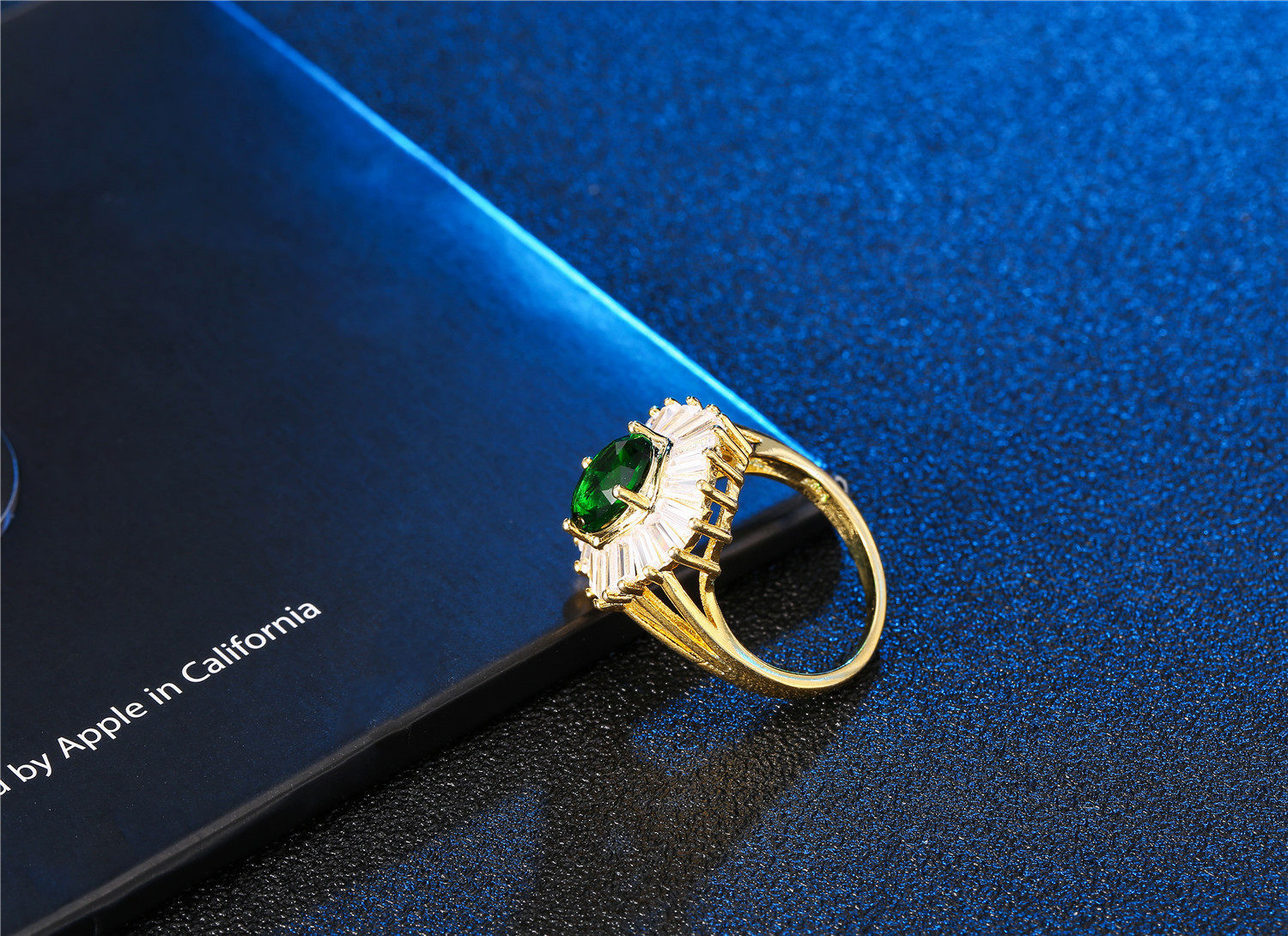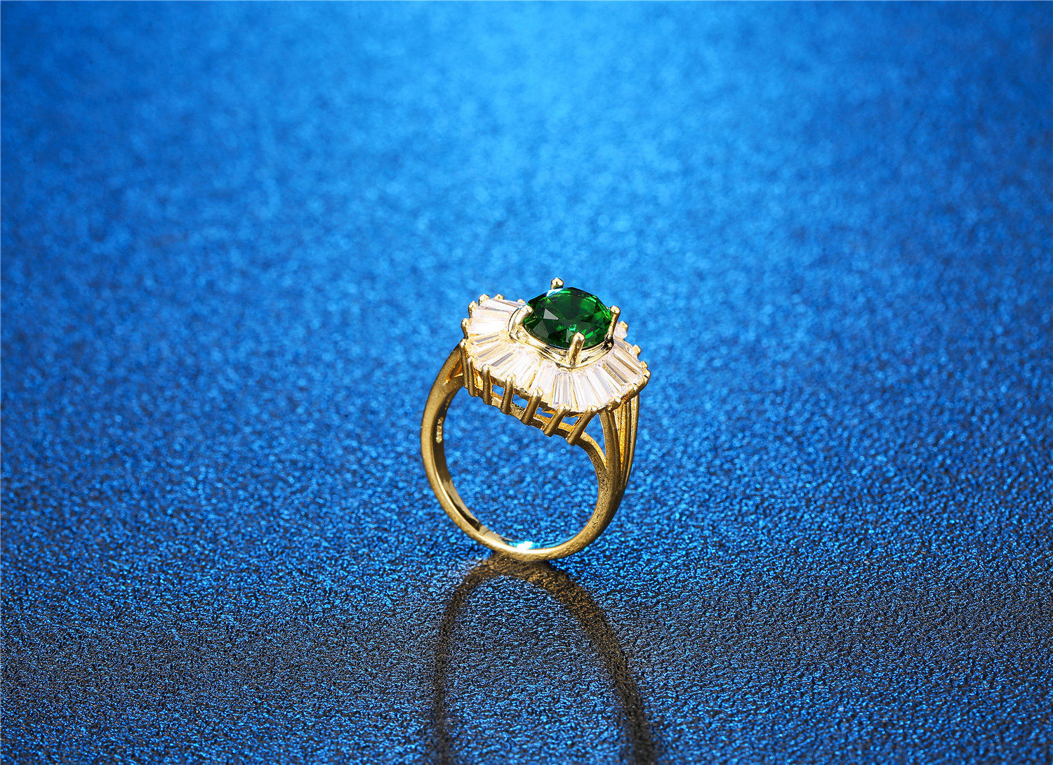 Young新品欧美时尚创意首饰镶嵌真金祖母绿锆石戒指 女士饰品