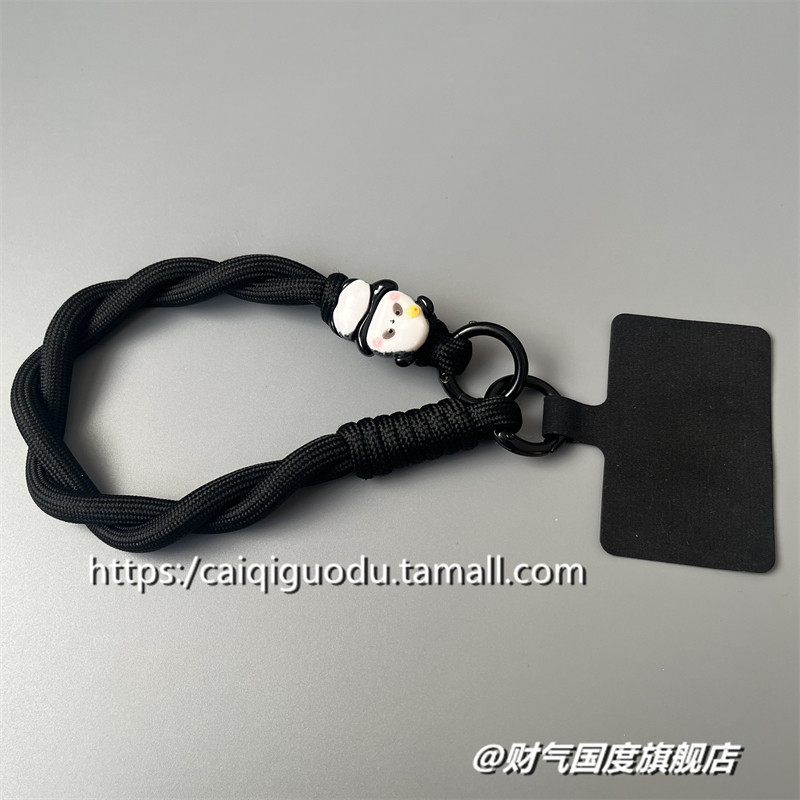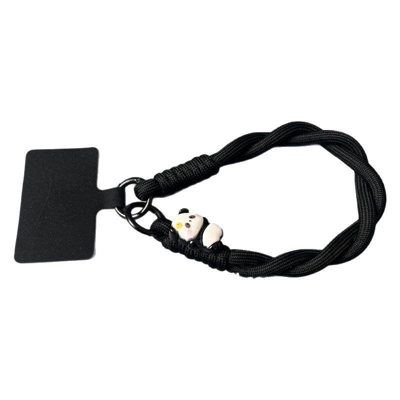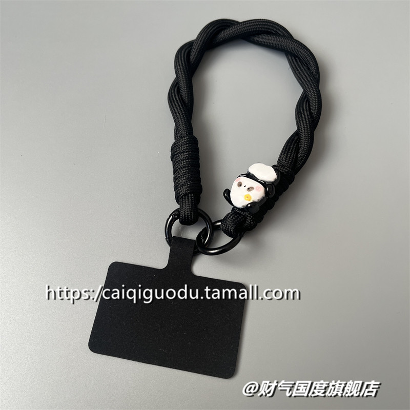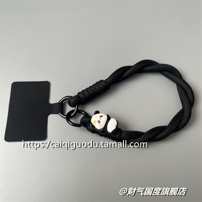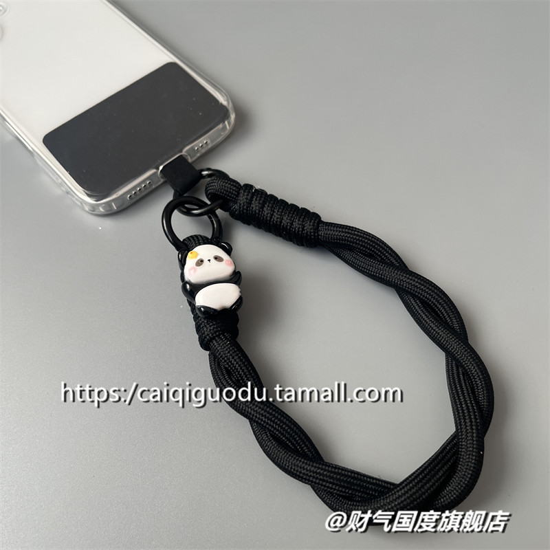 可爱立体熊猫手腕手机壳挂绳黑色纯色新品卡通简约超萌挂件女款短款双扣结实挂饰可拆卸吊绳挂链便携防丢百搭