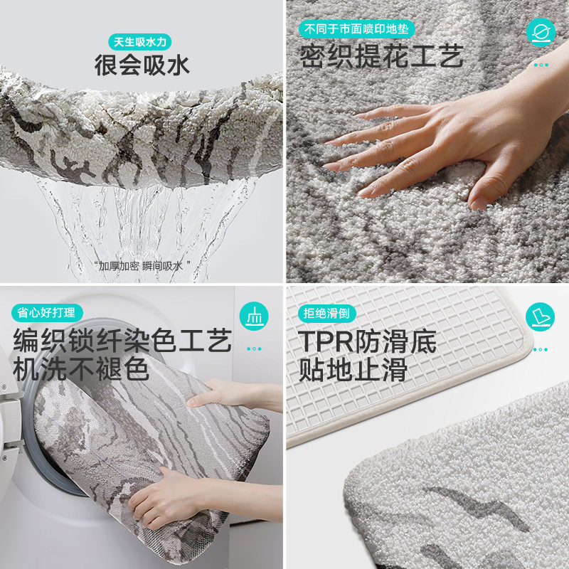 大江浴室地垫大理石纹理脚垫高克重植绒强吸水家用卫生间防滑垫