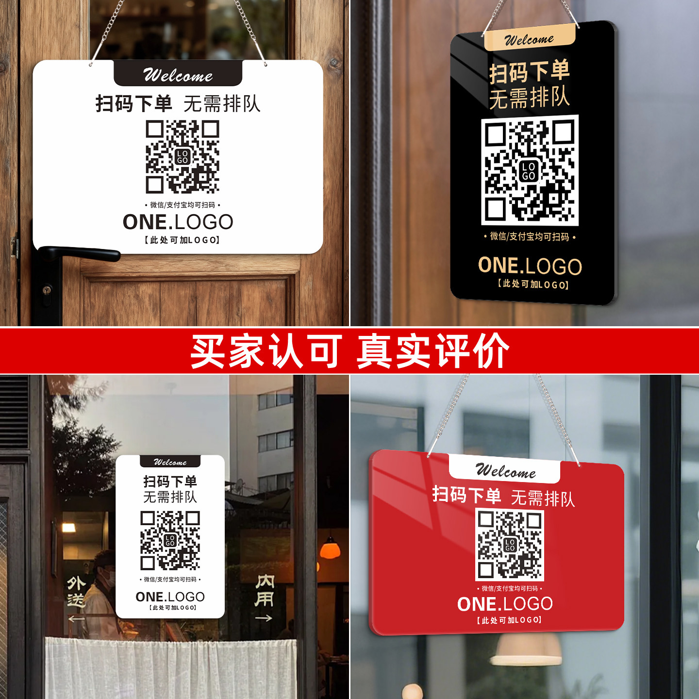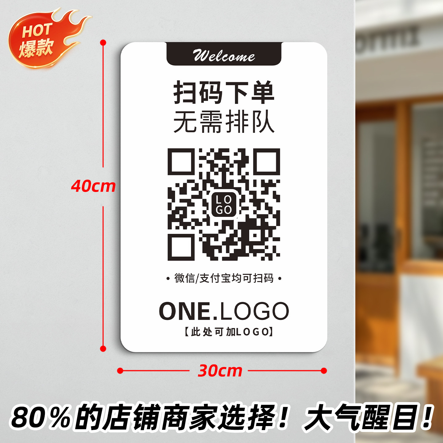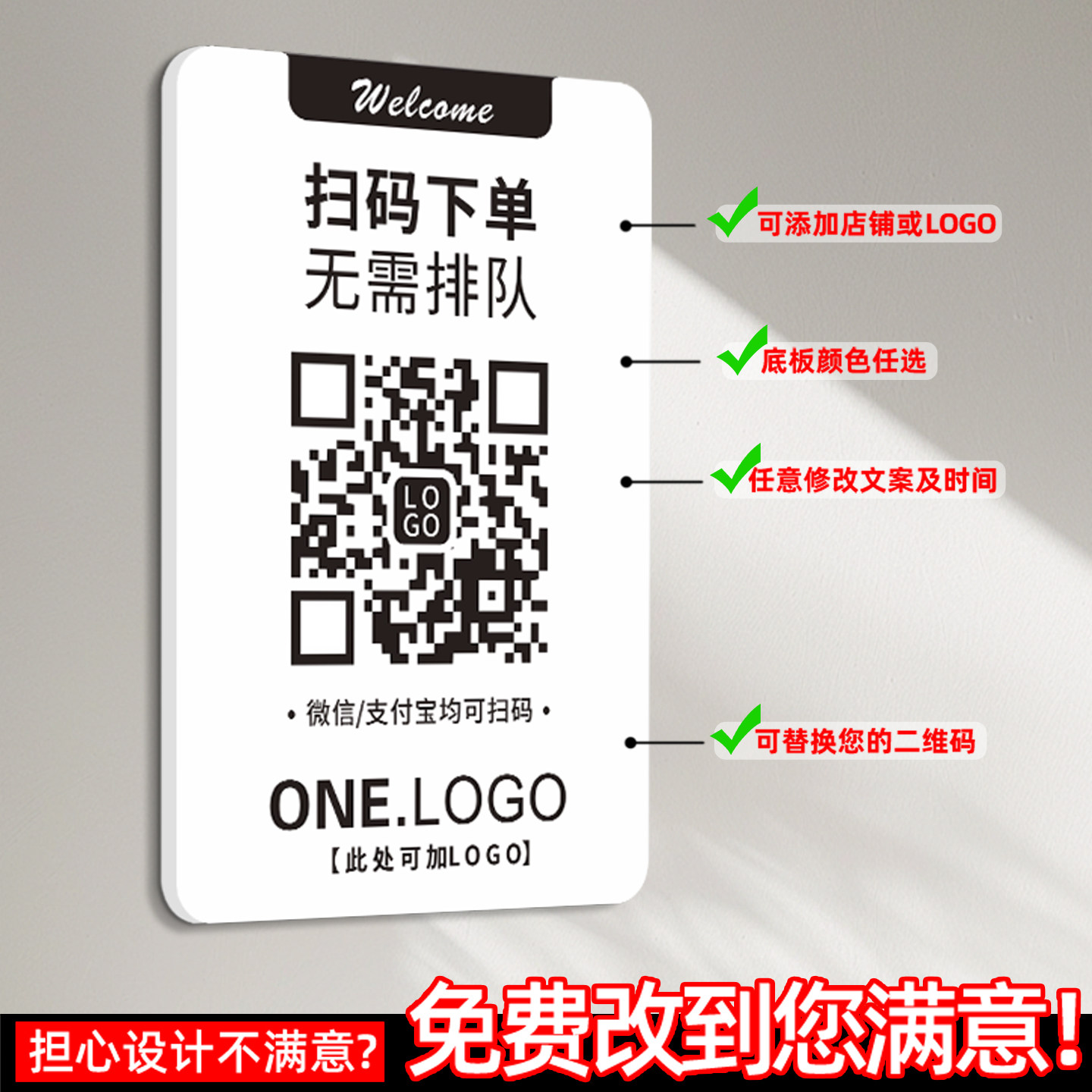 扫码点餐二维码展示牌小程序直接下单2026新款收款码亚克力指示贴纸制作定制奶茶店店铺收银广告信息贴墙设计