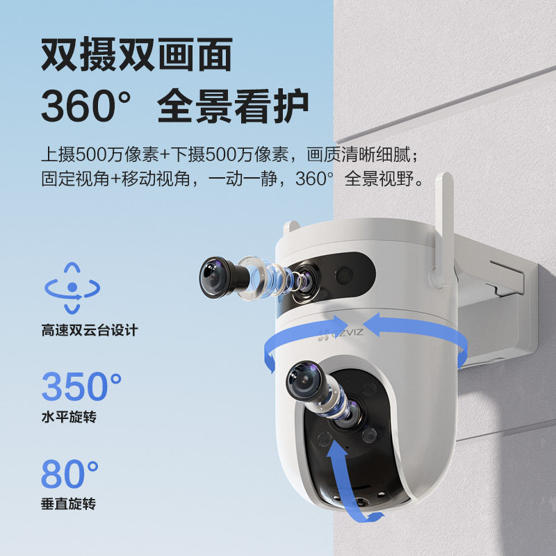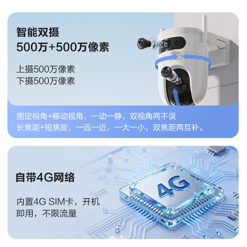 萤石H9C室外双摄云台360全景智能AI无线网络摄像头远程4G防水监控