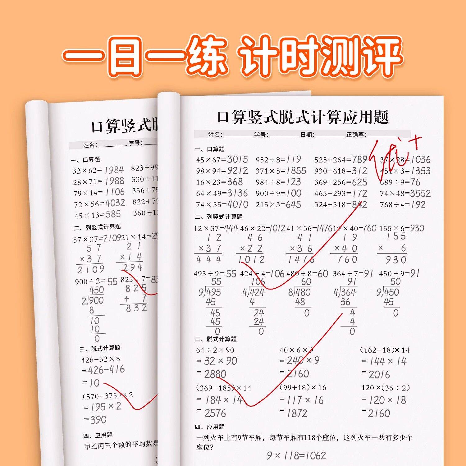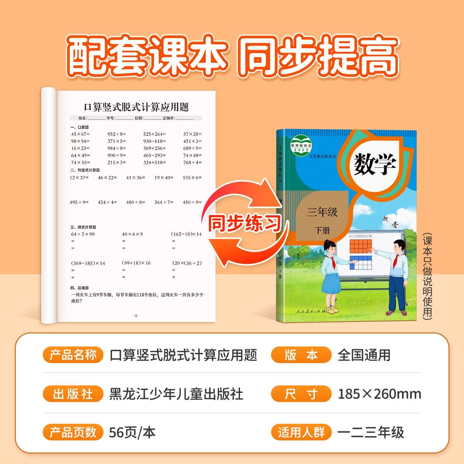 三年级上册下册数学口算天天练人教竖式脱式计算应用题卡儿童用品
