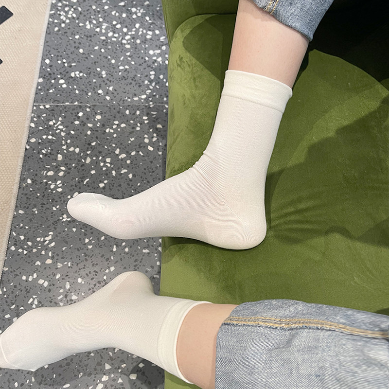 半永jiu经典小白袜棉柔软透气中筒堆堆袜女纯色学生百搭运动吸汗