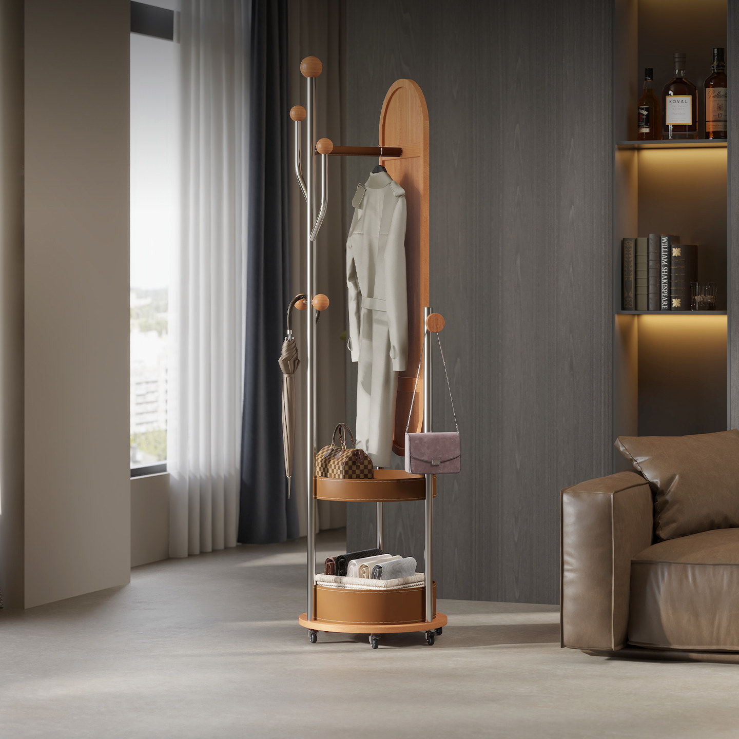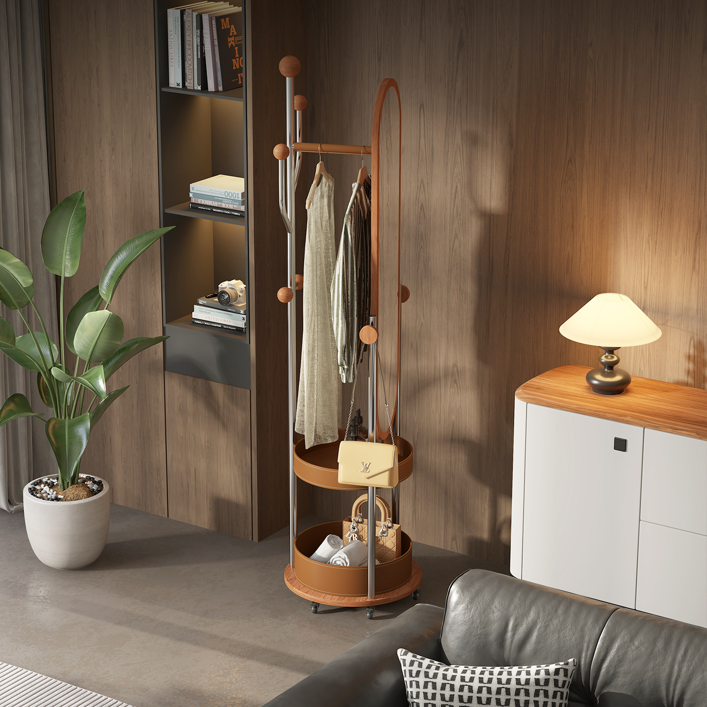 意式可移动全身镜一体衣帽架轻奢卧室落地试衣镜子多功能置物架子