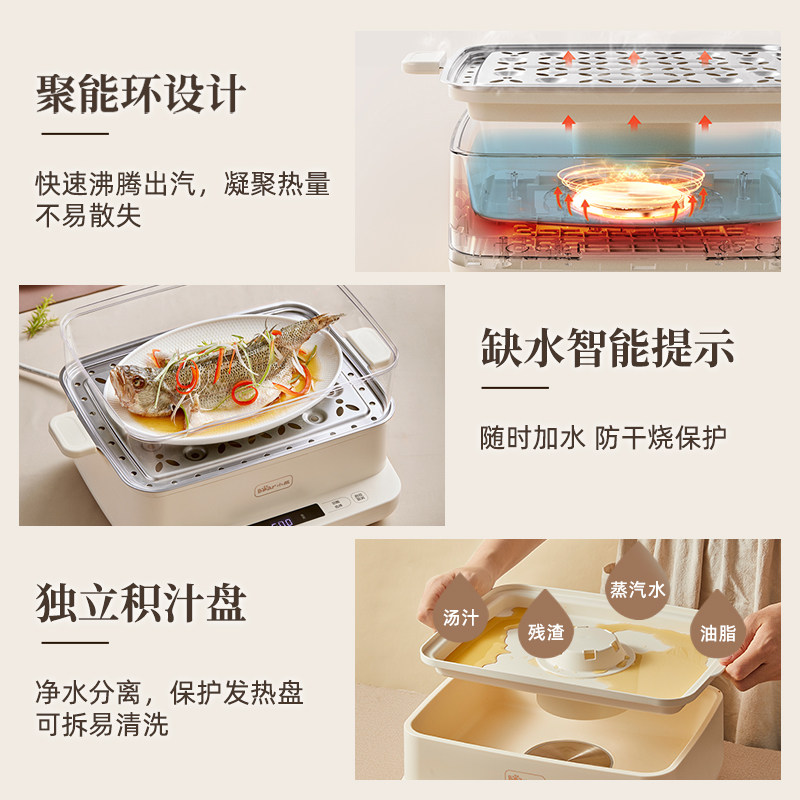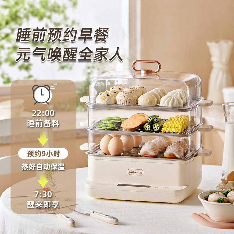 小熊电蒸锅多功能家用三层大容量全自动蒸汽锅多层蒸煮一体早餐机