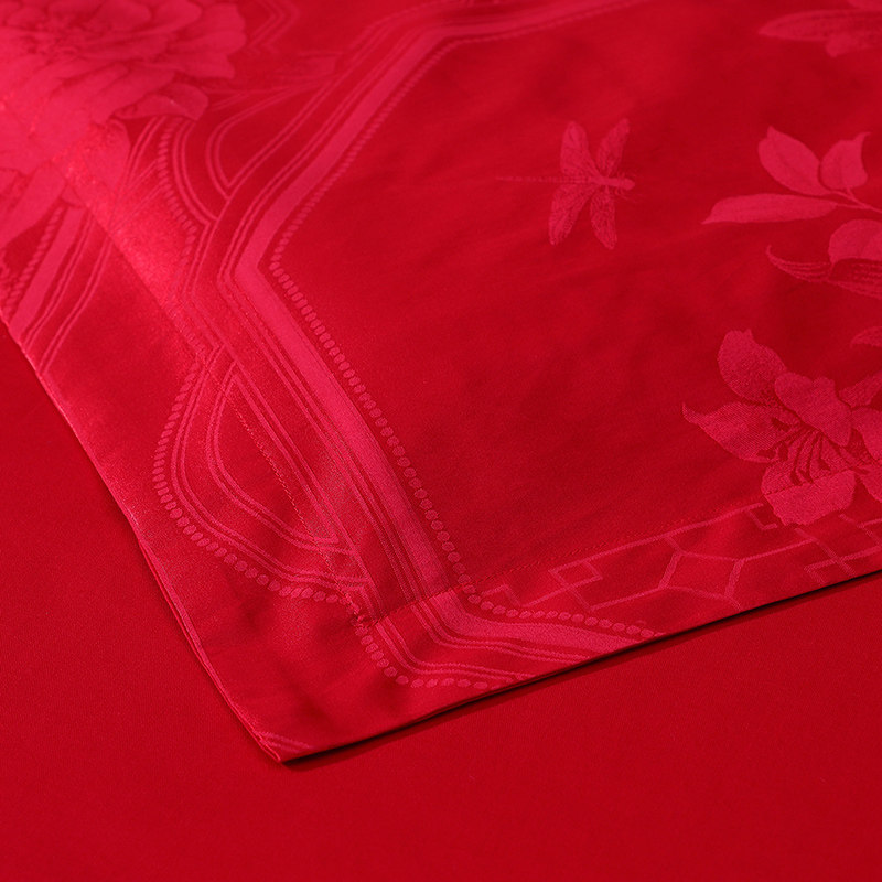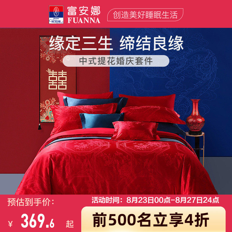 富安娜纯棉婚庆四件套大红色结婚床单被套全棉婚嫁喜被床上用品