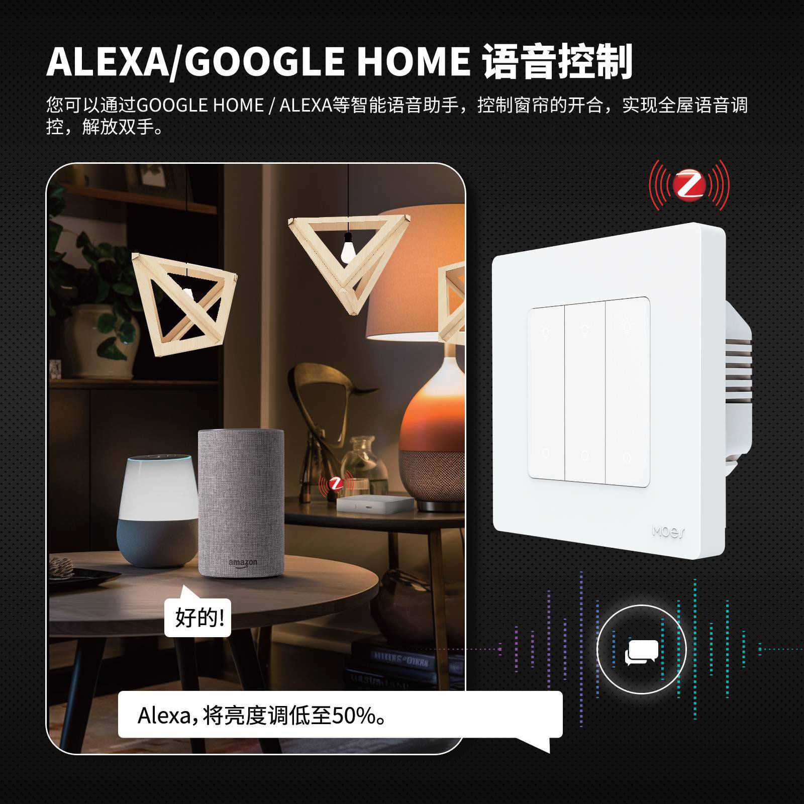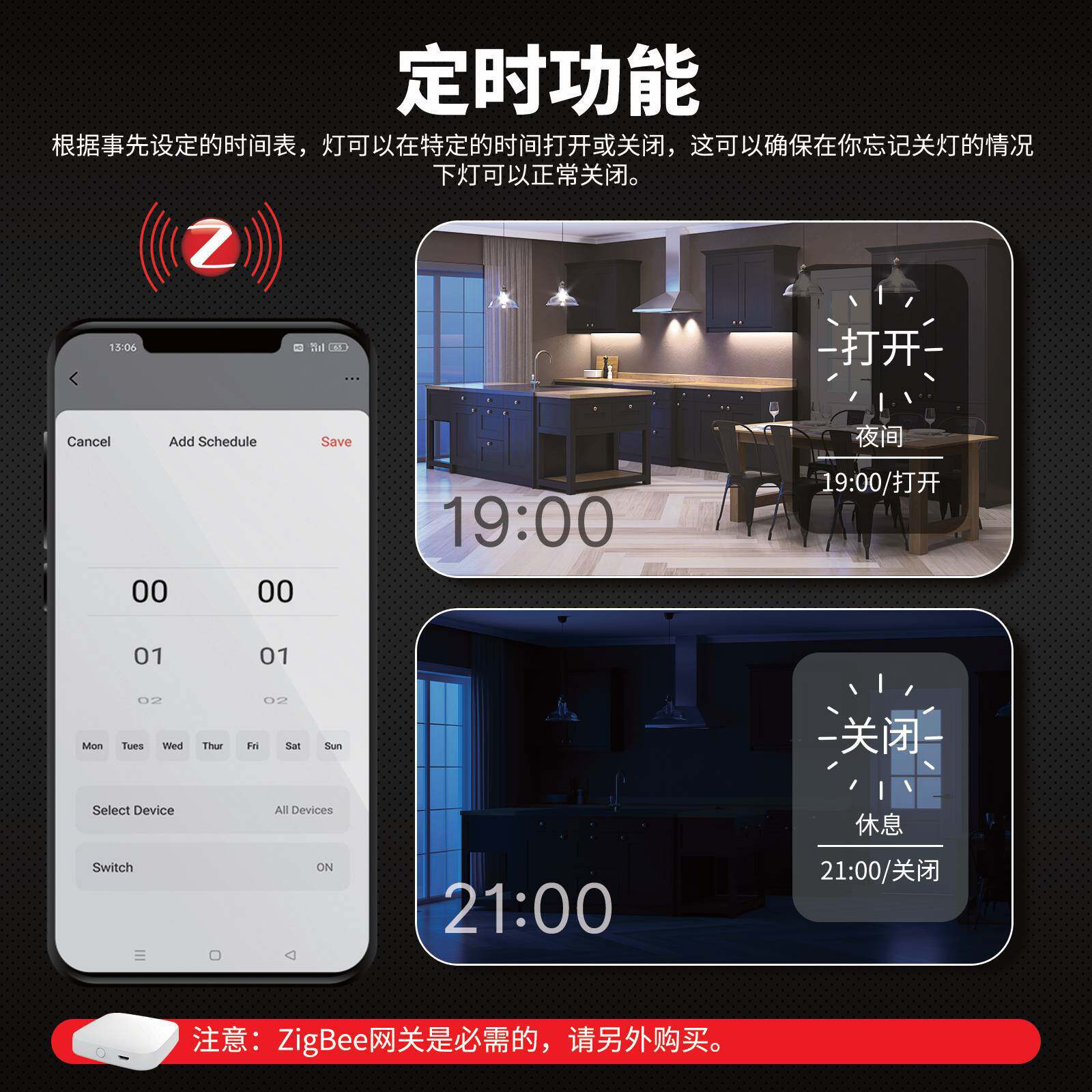 zigbee调光智能开关app语音定时涂鸦智能家居回弹按键调光开关