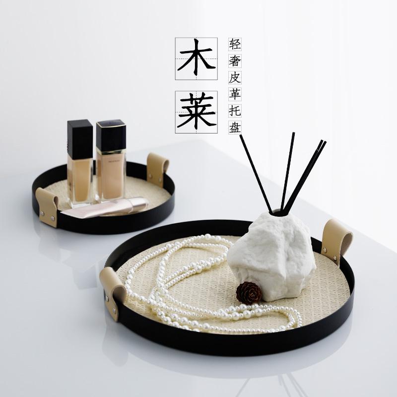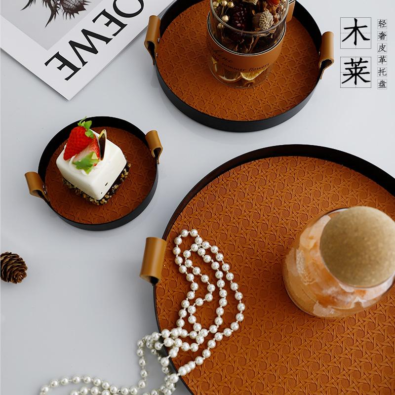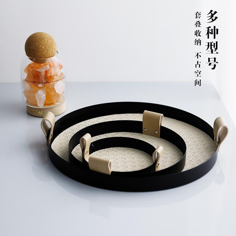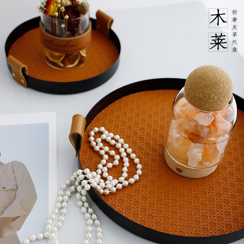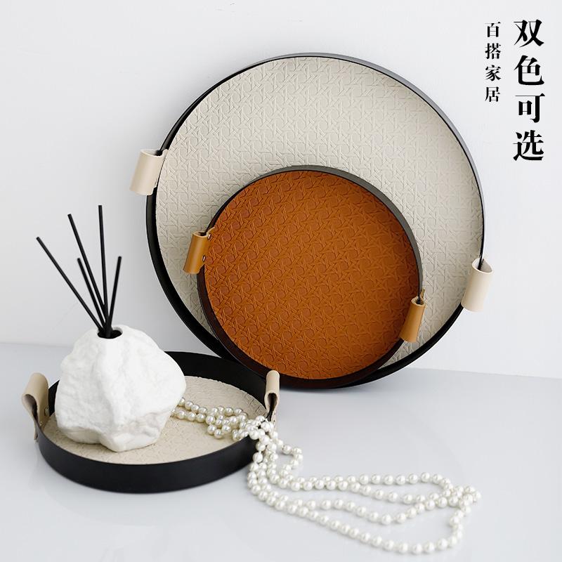 香薰蜡烛托盘家居双耳格纹皮革铁艺装饰品摆件高级感收纳整理盘