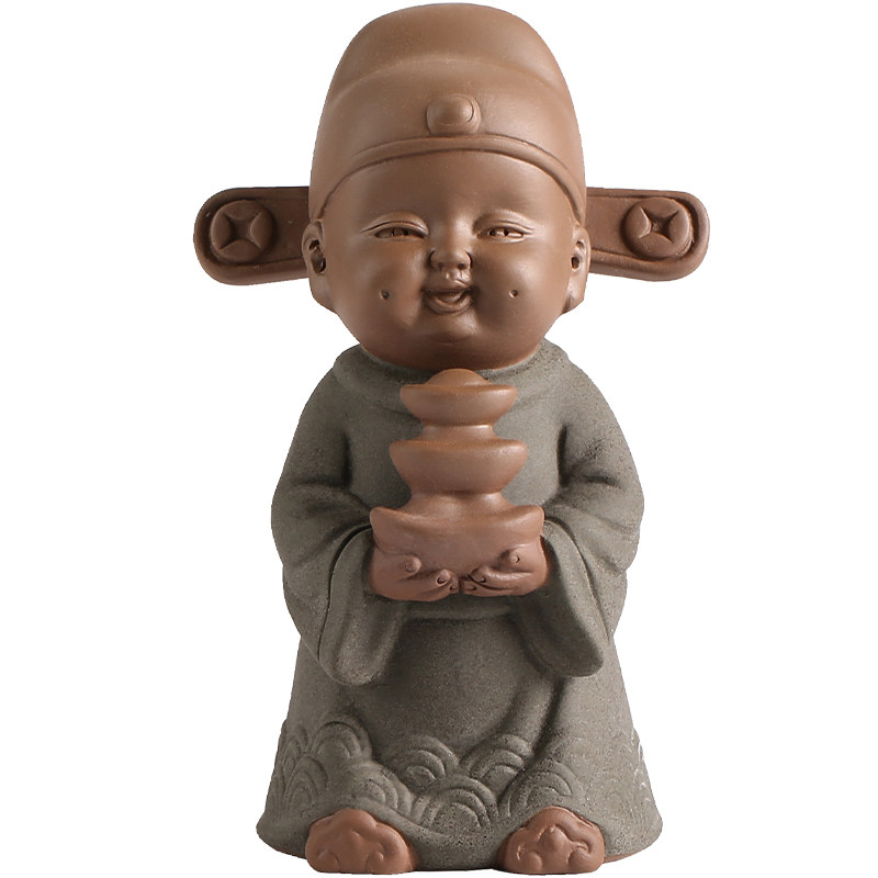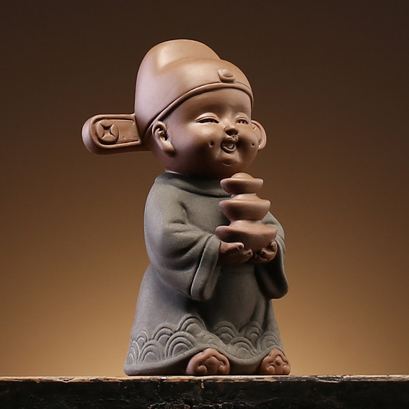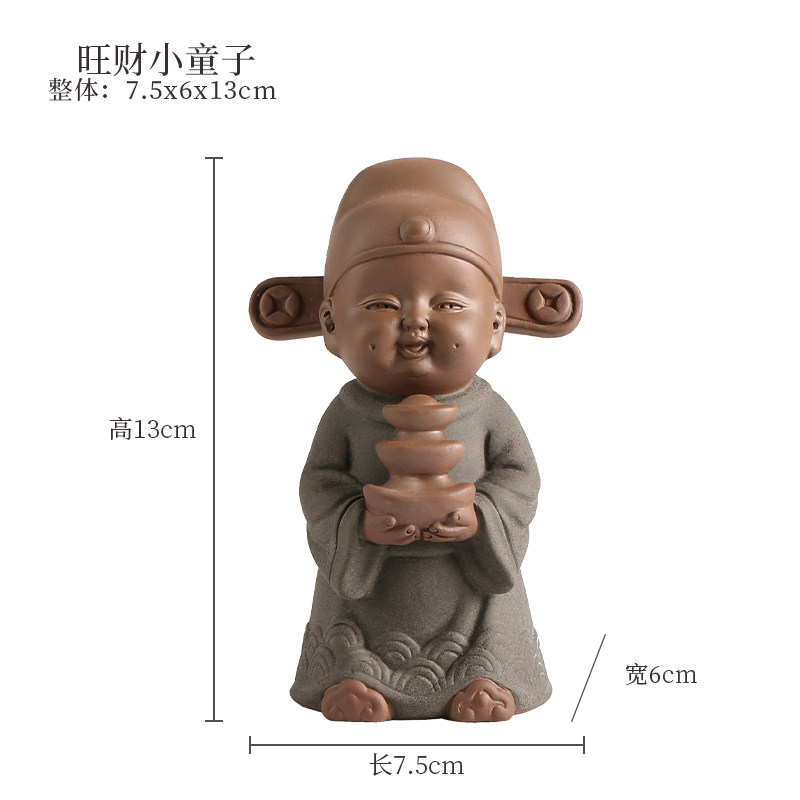 创意紫砂招财手工摆件旺财童子人物家居博古架办公室桌面装饰品
