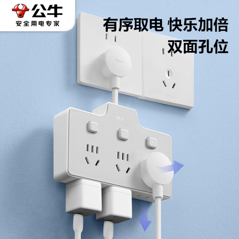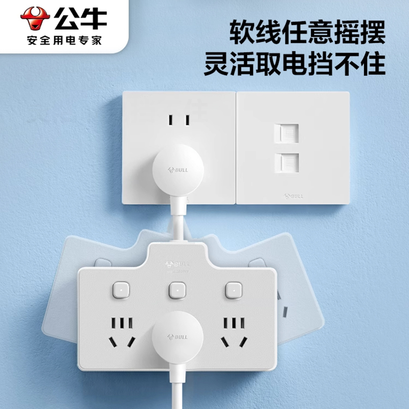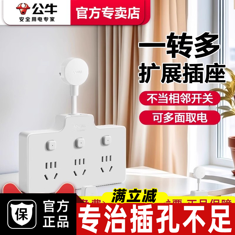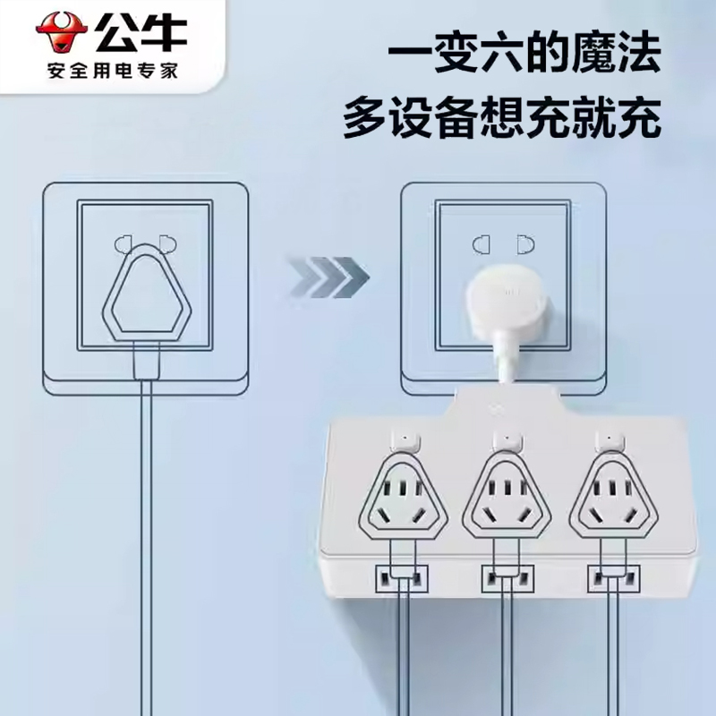 公牛多功能插座扩展插头转换器一转三家用多孔面板无线分控插排插