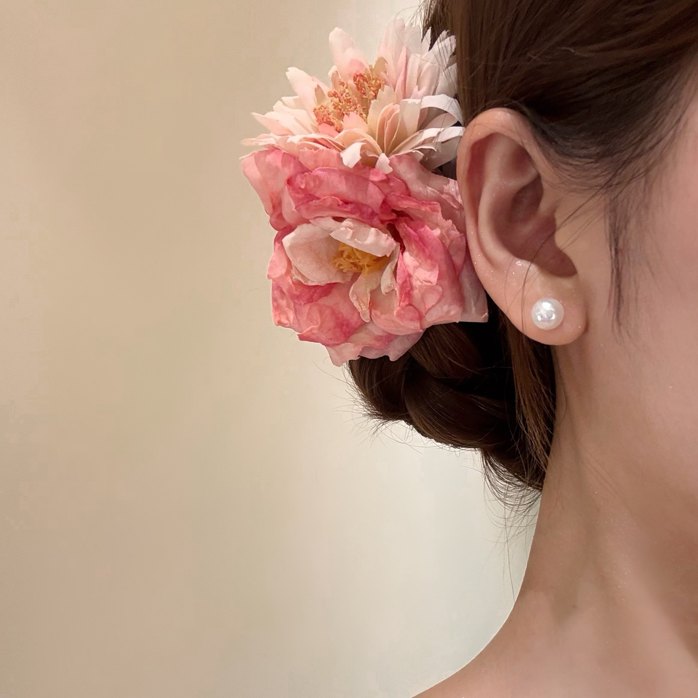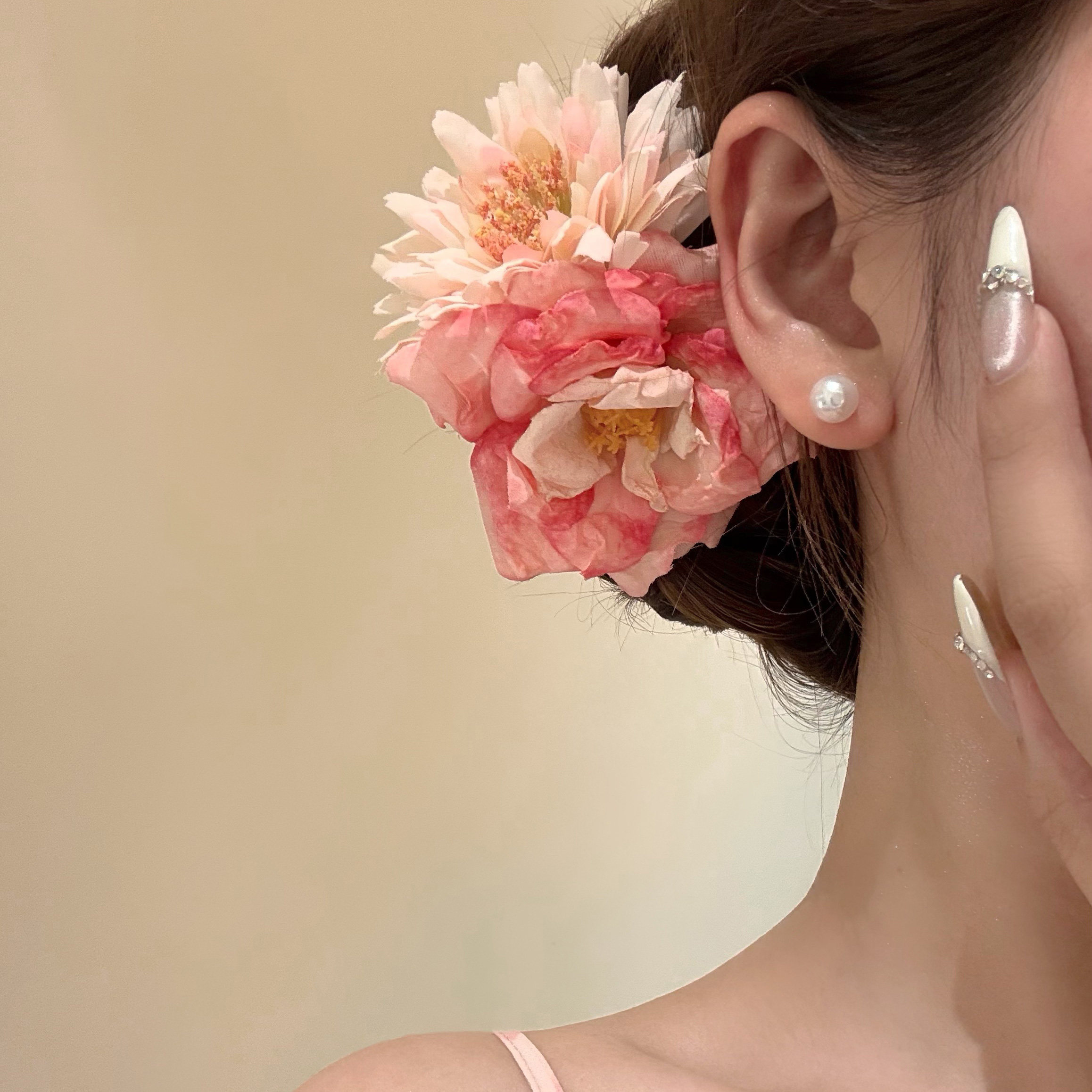 原创【落日粉韵】粉色玫瑰花朵发夹女侧边夹头花海边拍照头饰发饰