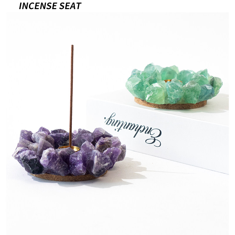 天然紫水晶线香香插底座原石水晶欧式香盘摆件家居香座香托装饰品
